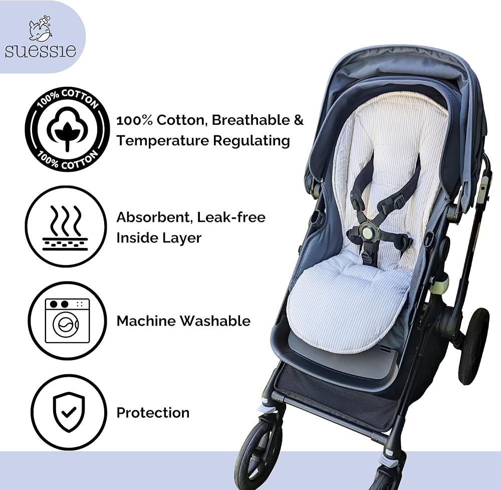 100% قطن - القطن الطبيعي والمنظم لدرجة الحرارة هو الأفضل لبشرة الطفل الحساسة. تسمح بطانات عربة الأطفال التي تسمح بمرور الهواء بشكل طبيعي بتدوير الهواء ويمكن أن تساعد في تنظيم درجة حرارة طفلك الصغير.