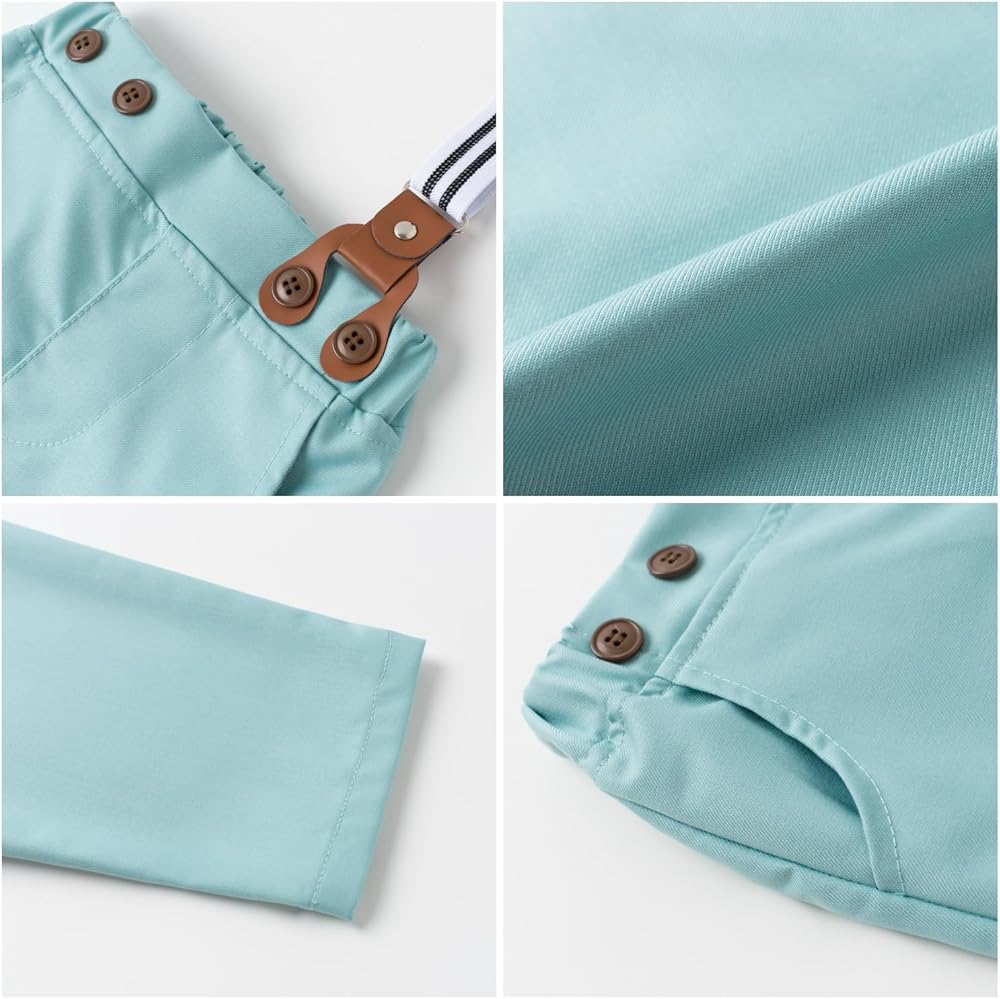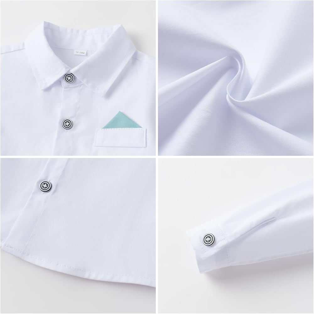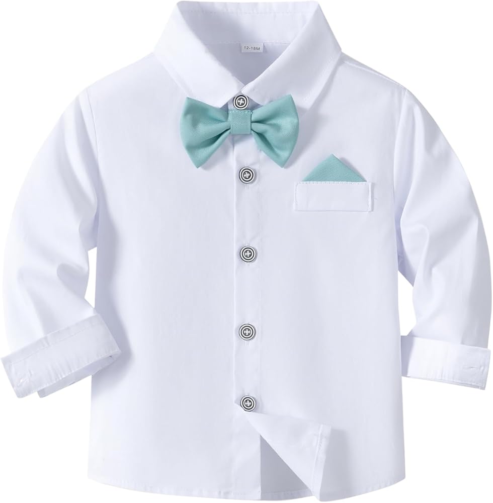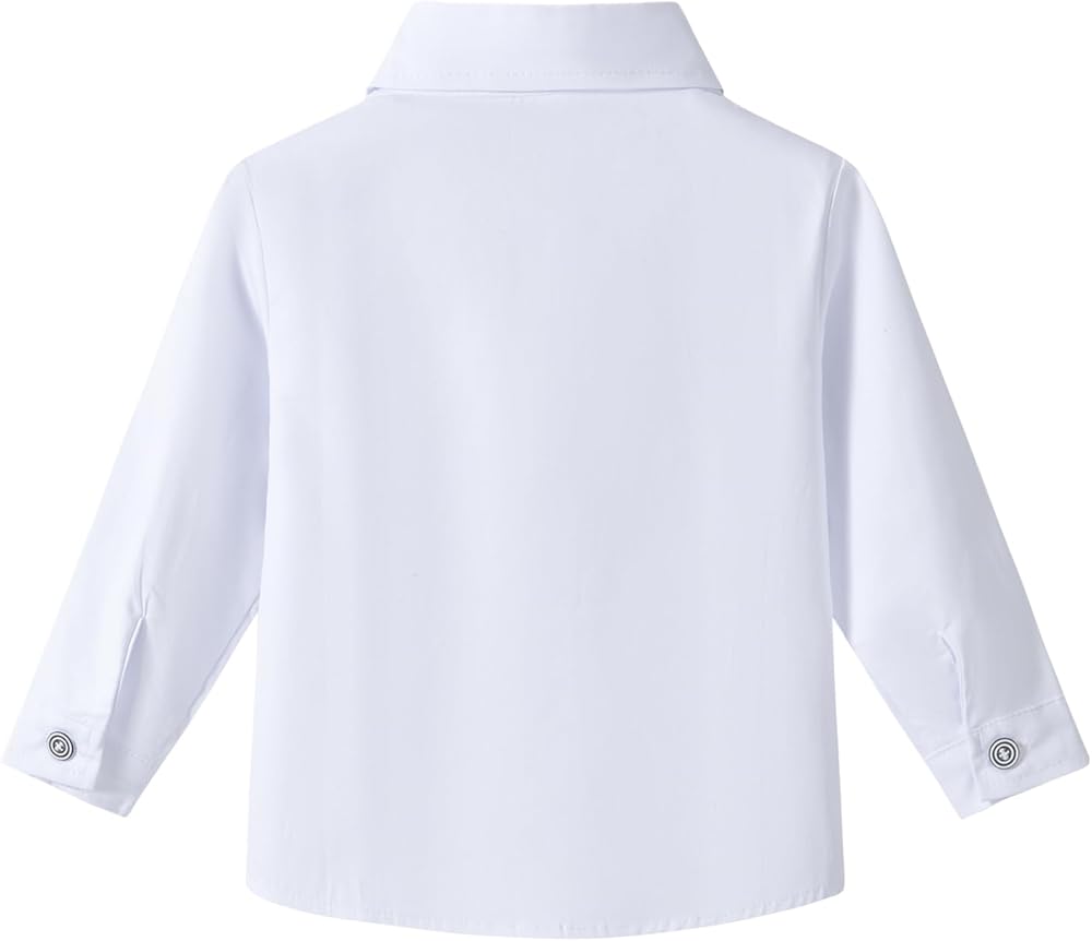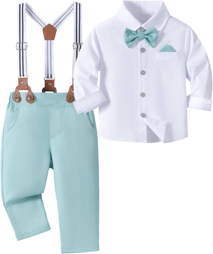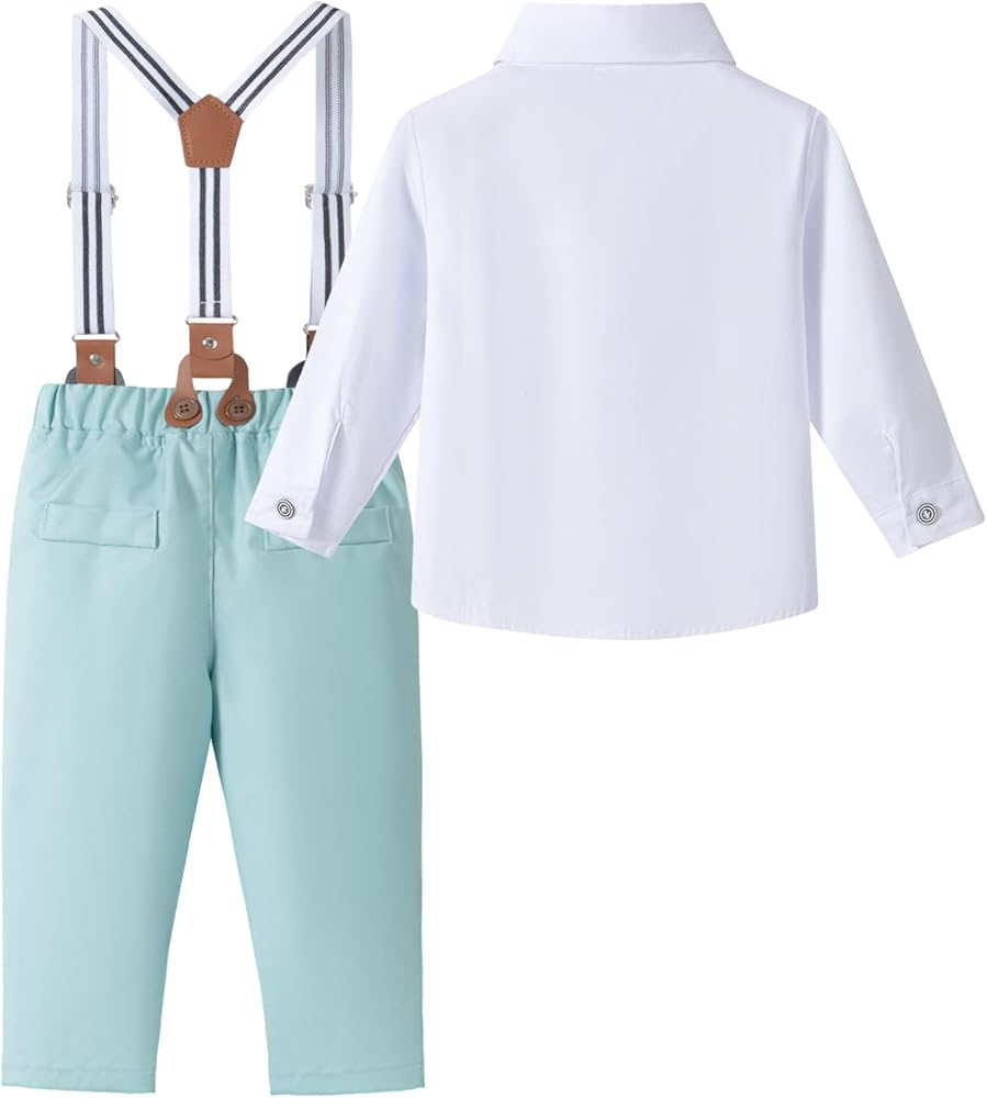 تتضمن العبوة قميصًا عالي الجودة بأكمام طويلة مع ربطة عنق وسروال حمالات للرجال. بفضل تصميمه الكلاسيكي الأنيق، سيكون طفلك ملك الحفلات الأكثر أناقة وأناقة في الغرفة.
