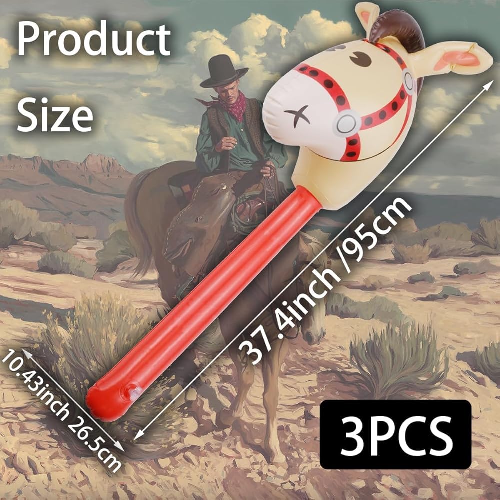 3 قطع من عصا رأس الحصان القابلة للنفخ، عصا رأس الحصان القابلة للنفخ، بالون عصا المهر لعيد الميلاد، وحفلات أعياد الميلاد، وديكور المنزل لرعاة البقر