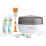 SIMPLIFY CLEANING BOTTLES AND PARTS. Microwave Steam Sterilizer Bags, Bottle Brush, and Cleaning Brushes make cleaning a breeze.