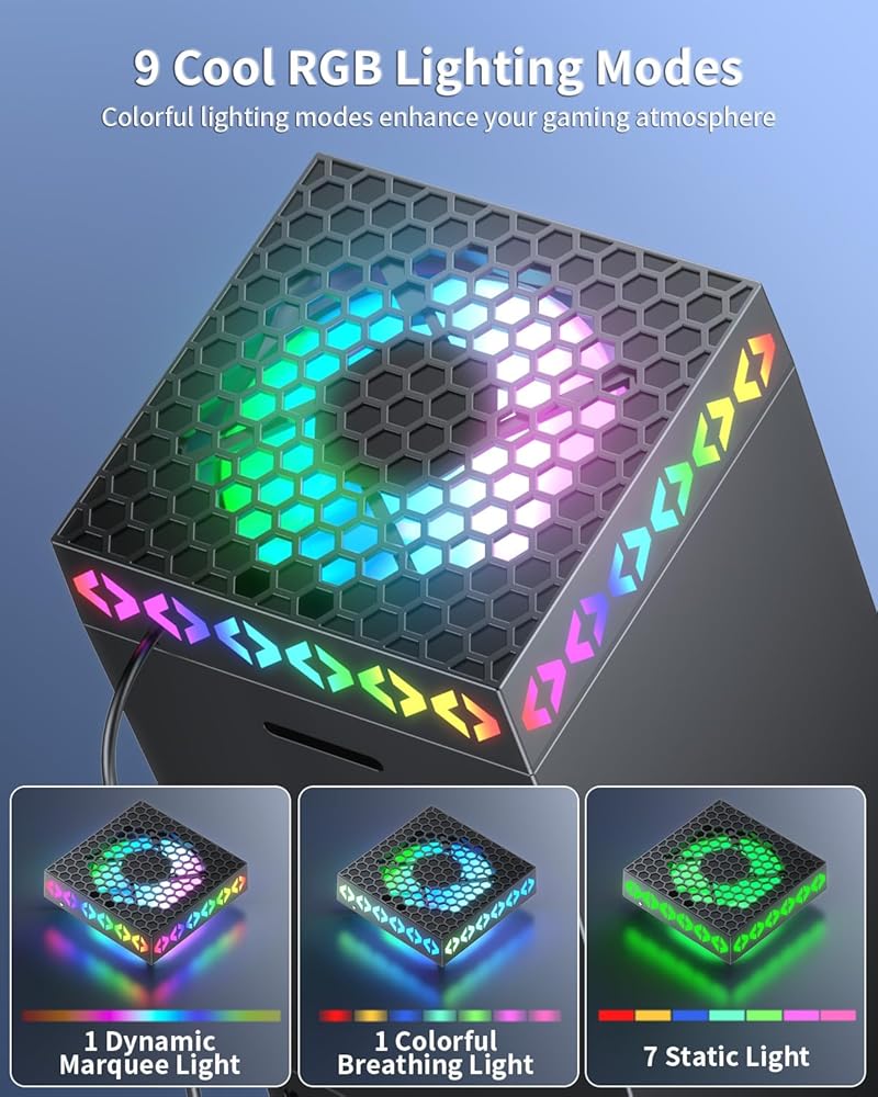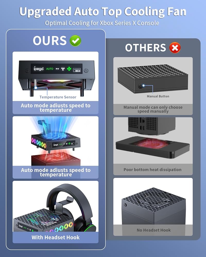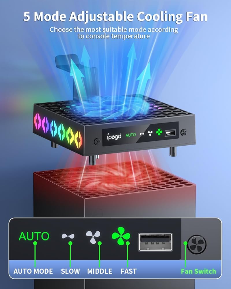 مروحة تبريد لسلسلة Xbox X، نظام تبريد الوضع التلقائي YUANHOT لملحقات Xbox Series X مع 9 مصابيح RGB ملونة، مبرد لوحدة تحكم Xbox Series X مع حامل سماعة الرأس، منفذ USB، ضوضاء منخفضة