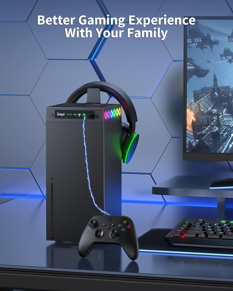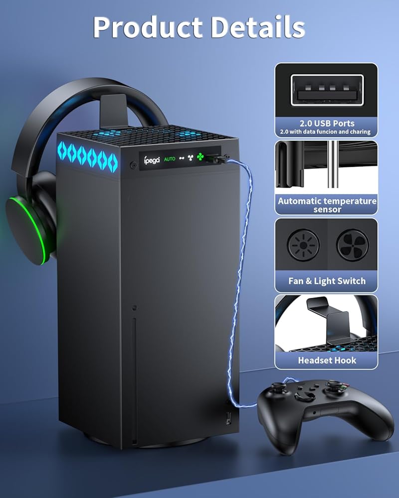أفضل ملحقات الألعاب لسلسلة Xbox X: مروحة تبريد Xbox هذه لسلسلة Xbox X مجهزة بمنفذ 2.0USB لدعم نقل البيانات والشحن، وهي مجهزة بحامل سماعة الرأس، حتى تتمكن من وضع سماعة الرأس الخاصة بك، والحفاظ على غرفة اللعب الخاصة بك نظيفة ومرتبة، كهدية مثالية لجهاز إكس بوكس إكسريس إكس