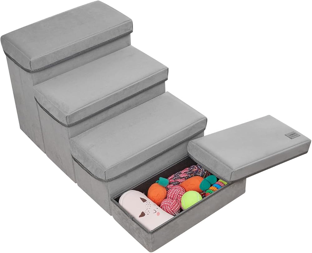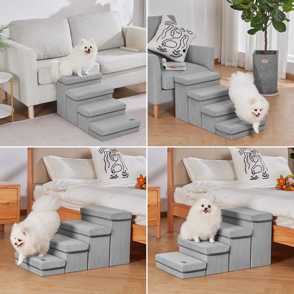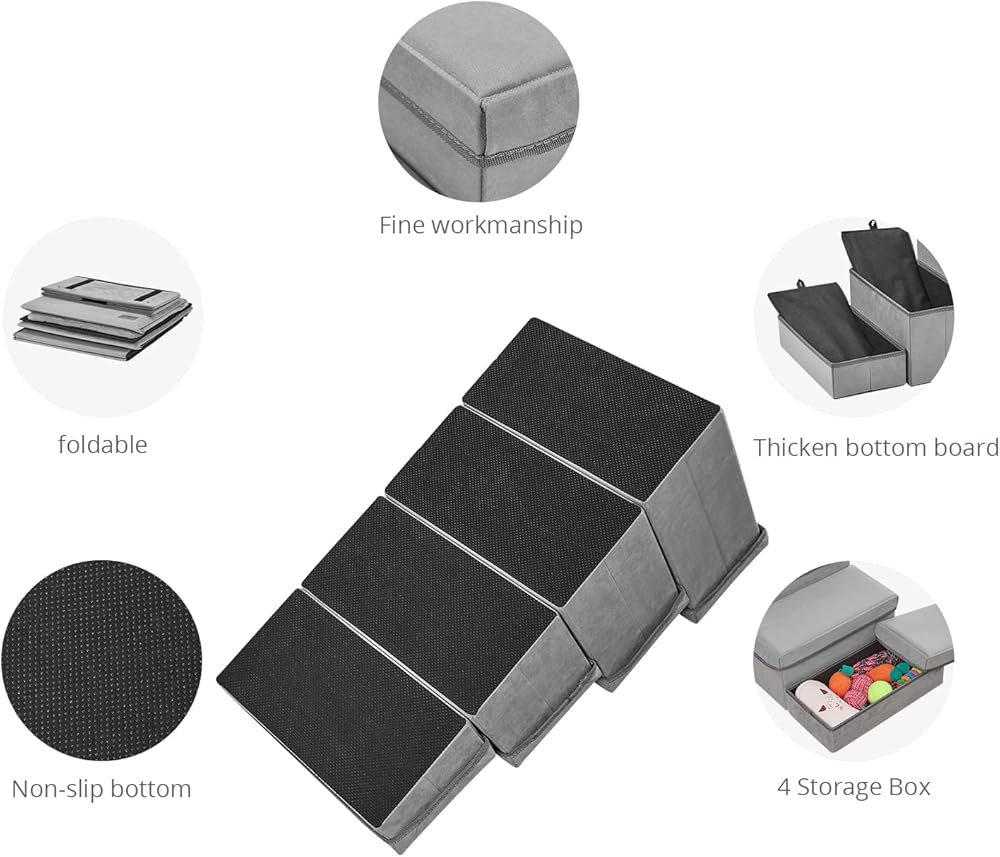 ❤إن سلالم الحيوانات الأليفة القابلة للطي هذه ليست مجرد درج، ولكنها أيضًا صندوق تخزين لأشياء الكلاب. يمكن وضع 4 صناديق تخزين ذات سعة كبيرة وملابس الكلاب والجر والبطانيات وأدوات التمريض.