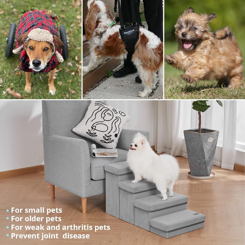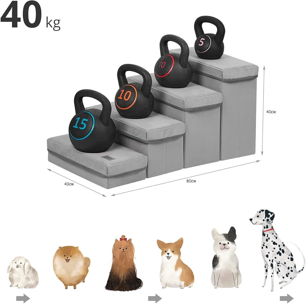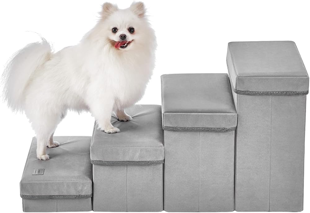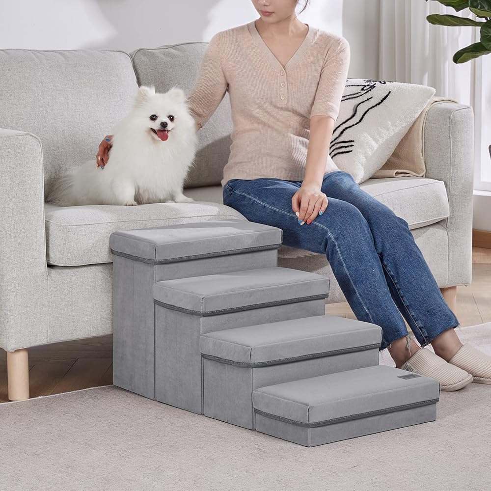 ❤إن سلالم الحيوانات الأليفة القابلة للطي هذه ليست مجرد درج، ولكنها أيضًا صندوق تخزين لأشياء الكلاب. يمكن وضع 4 صناديق تخزين ذات سعة كبيرة وملابس الكلاب والجر والبطانيات وأدوات التمريض.