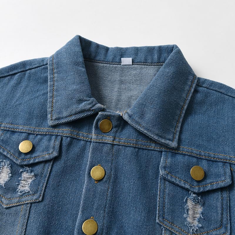 【التصميم】: سترة جينز بأكمام طويلة وياقة مطوية للأسفل للأولاد، سترات يومية كاجوال، تصميم بفتحة ممزقة يجعل الجاكيت أكثر أناقة
