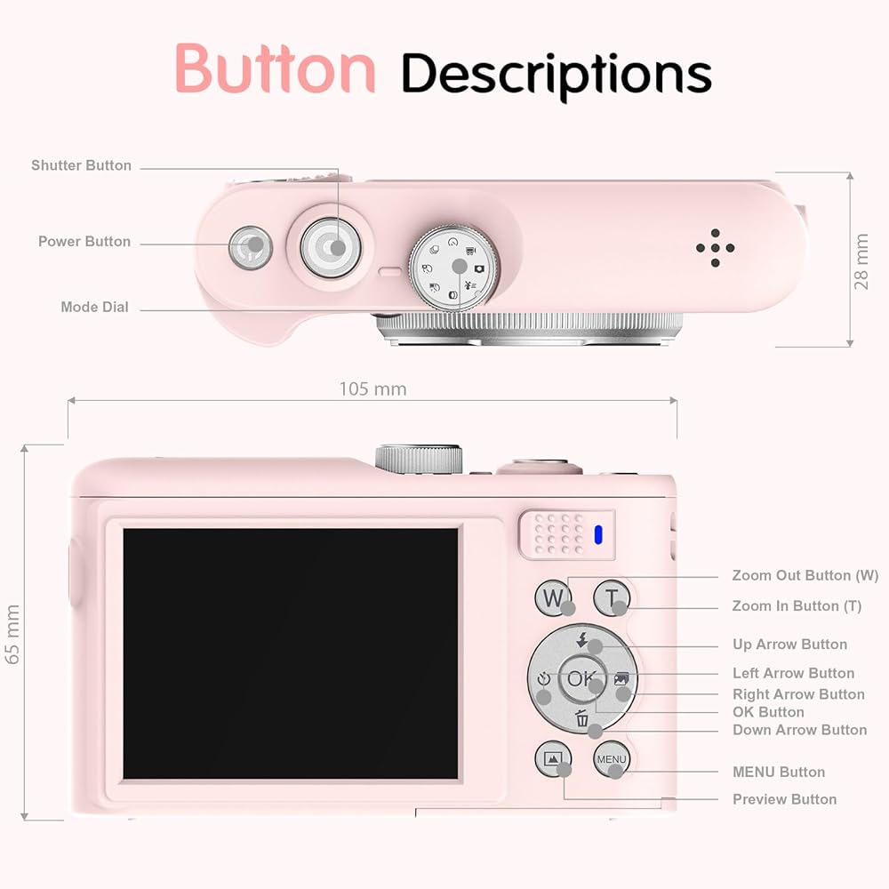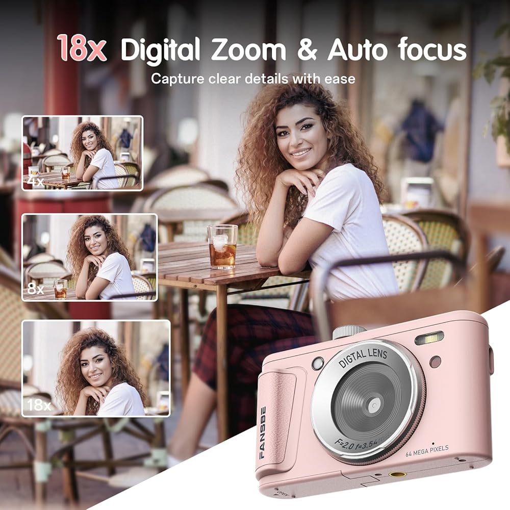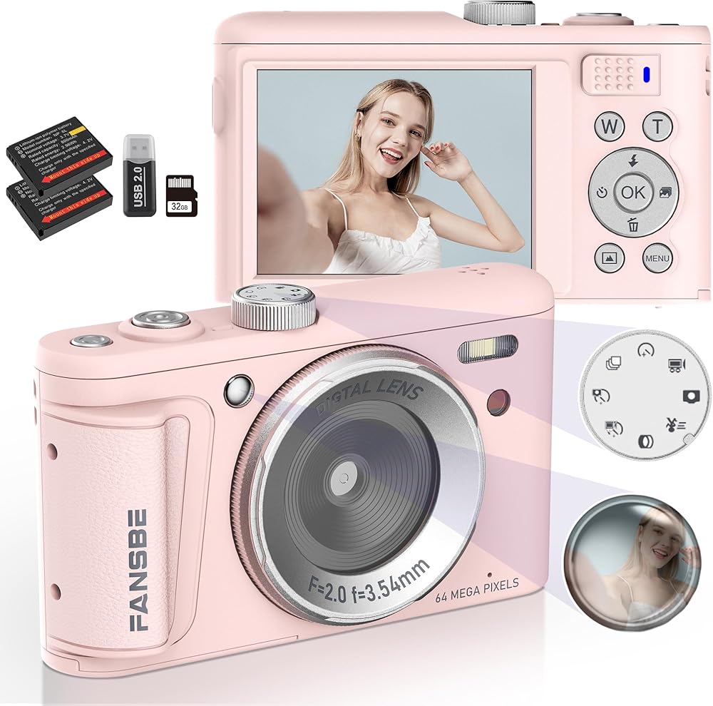 • ✨ كاميرا رقمية بدقة 64 ميجابكسل وUHD 4K - التقط مقاطع فيديو حية بدقة 4K وصورًا عالية الدقة بدقة 64 ميجابكسل باستخدام أحدث مستشعر CMOS. تضمن هذه الكاميرا الرقمية المدمجة الحفاظ على كل لحظة ثمينة بوضوح مذهل. وهي مجهزة بفلاش ساطع، وهي مثالية للتصوير حتى في ظروف الإضاءة المنخفضة. تحتوي الكاميرا الرقمية على ميكروفون مدمج لمساعدتك في تسجيل كل مدونة فيديو مثيرة في حياتك