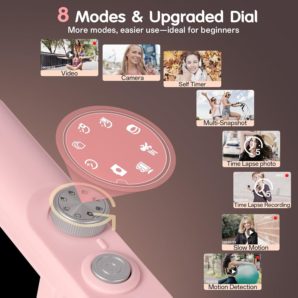 • 📷 كاميرا رقمية متعددة الوظائف - توفر هذه الكاميرا الرقمية 8 أوضاع متعددة الاستخدامات لتلبية احتياجات التصوير المتنوعة الخاصة بك. تتضمن خيارات الصور الكاميرا، والمؤقت الذاتي، واللقطات المتعددة، والصورة بفاصل زمني. تتميز خيارات الفيديو بالفيديو واكتشاف الحركة والحركة البطيئة والتسجيل بالفاصل الزمني. تعتبر هذه الكاميرات الرقمية للتصوير الفوتوغرافي ذات التصميم سهل الاستخدام مثالية للمبتدئين الذين يتطلعون إلى ممارسة مهاراتهم في التكوين والتصوير الفوتوغرافي