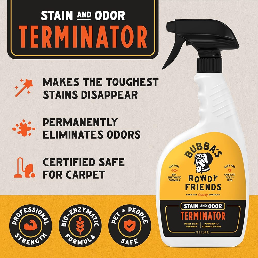 منظف إنزيم فائق القوة من BUBBAS - مزيل رائحة الحيوانات الأليفة - مزيل بقع السجاد - إزالة رائحة بول الكلاب والقطط من المرتبة والأريكة والبساط والغسيل والأرضيات الصلبة والمزيد. لوازم تدريب الجراء