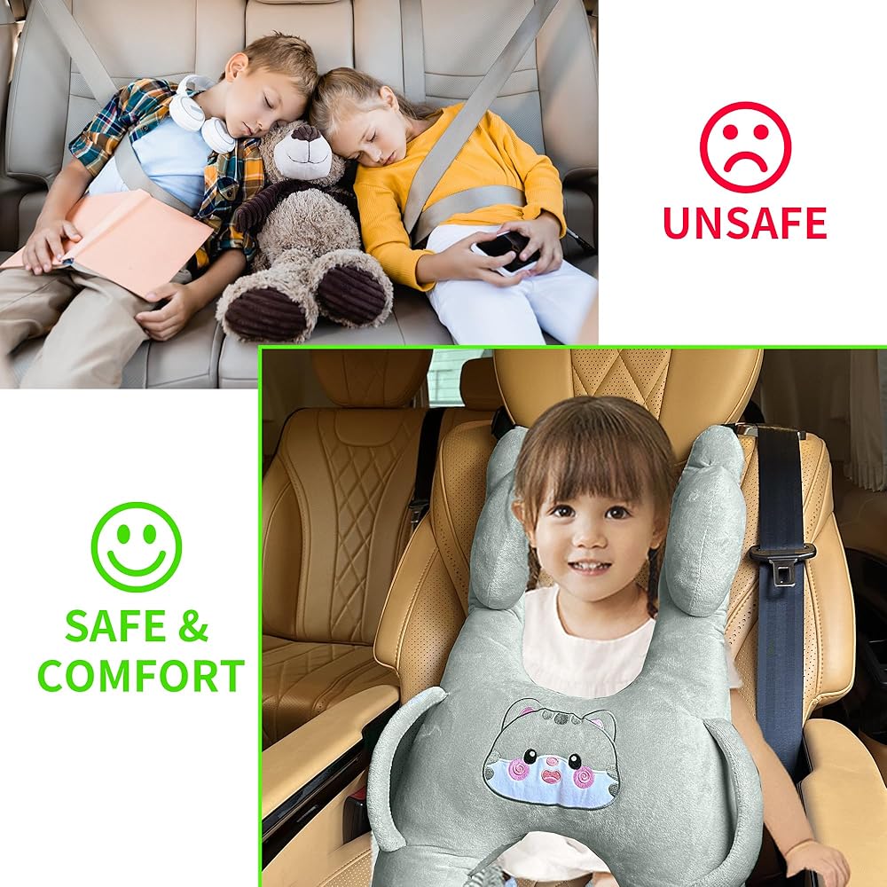 🛋️【تصميم للأطفال】تتميز وسادة وسادة السيارة الخاصة بنا بتصميم كرتوني للأطفال. النمط شائع ويحبه الطفل. التصميم على شكل حرف H مناسب للأطفال ليحصلوا على نوم لطيف أثناء الرحلة.