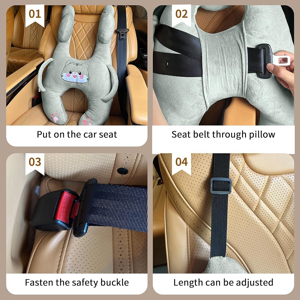 🛋️【جسم آمن】يمكن شد وسادة السفر الخاصة بمقعد السيارة بأمان باستخدام حزام مقعد السيارة. هناك مقبضان يسمحان للأطفال بإمساكهما أثناء السفر. يحمي الرأس والجسم من الاصطدام أثناء الرحلة.