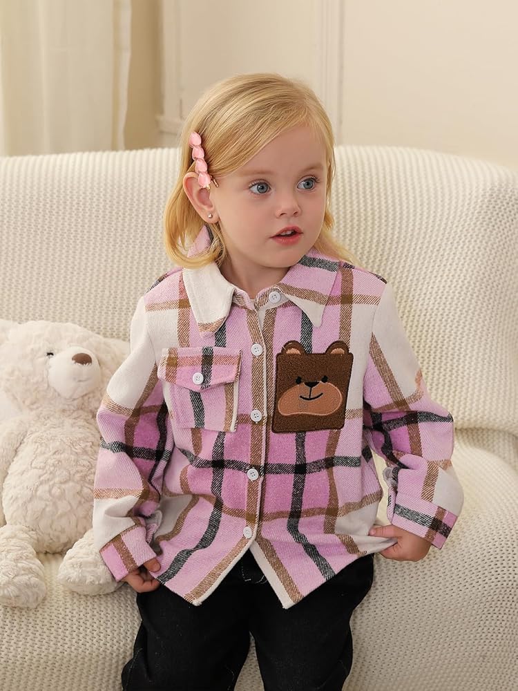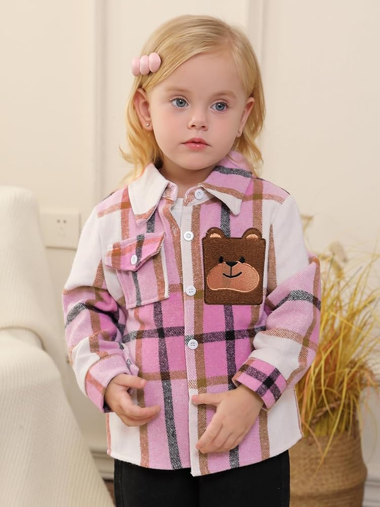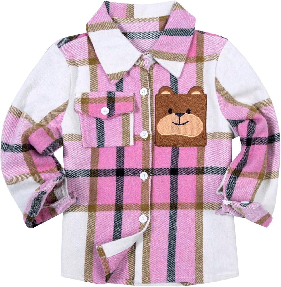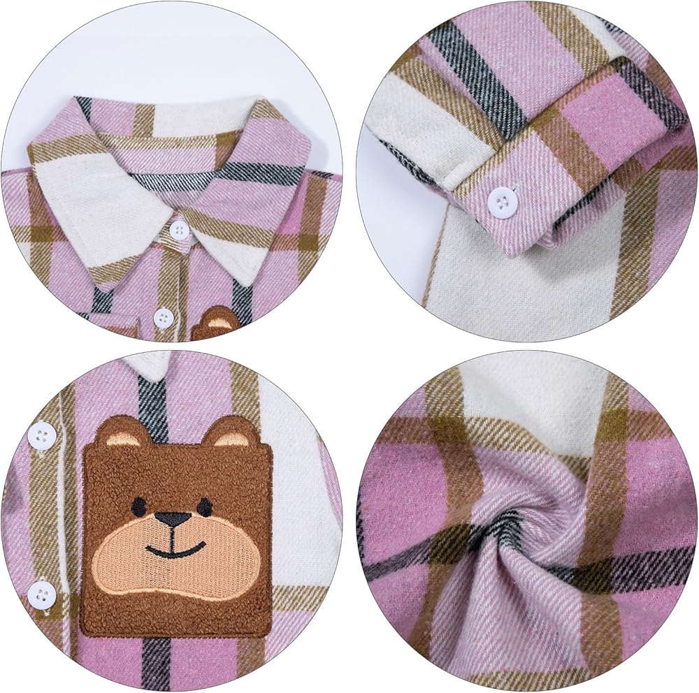 • قميص فلانيل للأطفال، ياقة كلاسيكية مطوية إلى الأسفل، وأكمام طويلة، وأساور أكمام بأزرار، وجيب الصدر الأيمن وتطريز الدب الأيسر، هذا منتج يجب اقتناؤه في خزانة طفلك الصغير.