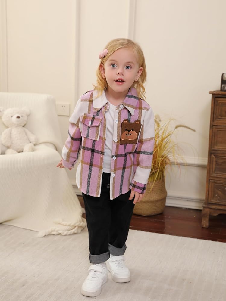 • قميصنا الكلاسيكي بأكمام طويلة وأزرار سفلية مصنوع من قماش ناعم. ناعم ومريح. قميص الفانيلا للأطفال الصغار ناعم جدًا وخفيف الوزن وصديق للبشرة وجيد التهوية. سترات للأولاد والبنات والأطفال الصغار بأزرار وسحاب معطف علوي ملابس خارجية مع جيوب، أنيقة وجميلة.