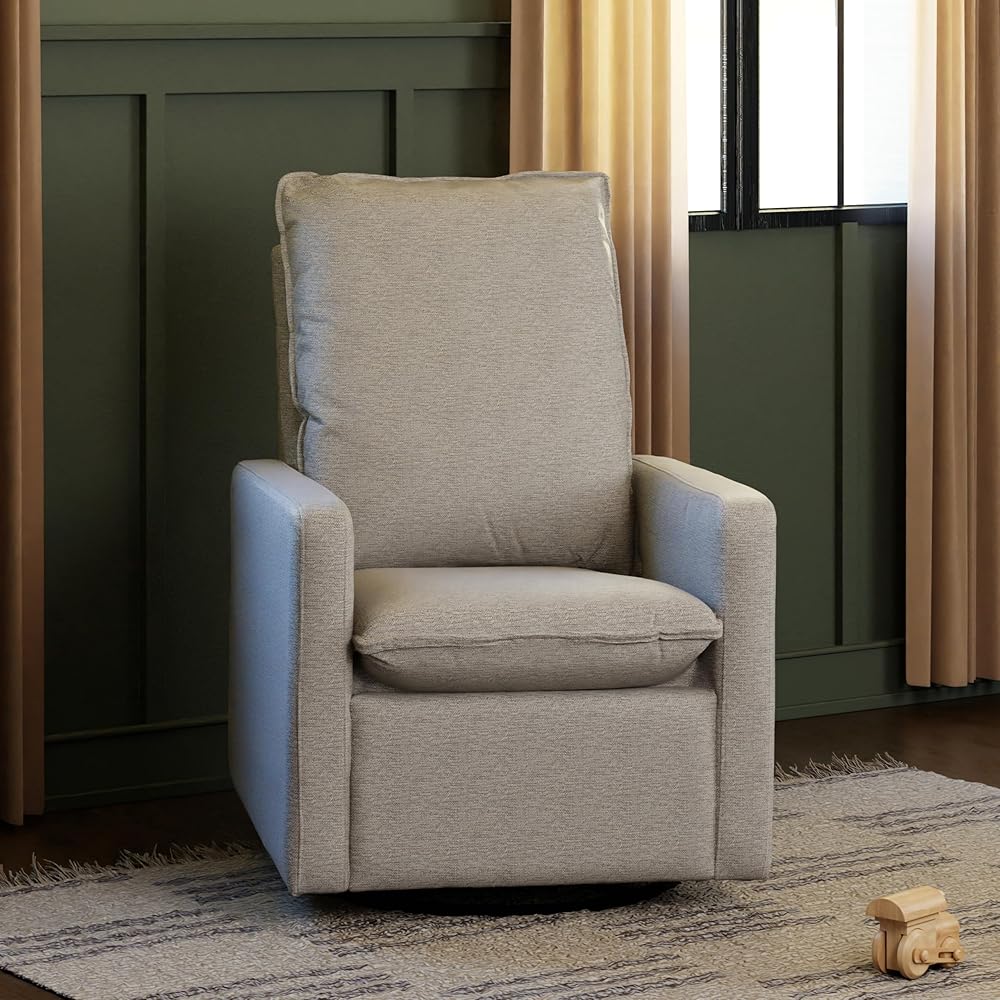 • PLUSH PILLOWBACK GLIDER: Relax into the Cali Swivel Glider with a plush high pillowback that provides extra neck support, full 360° swivel and glide motion and is upholstered by hand in texture-rich boucle fabric.