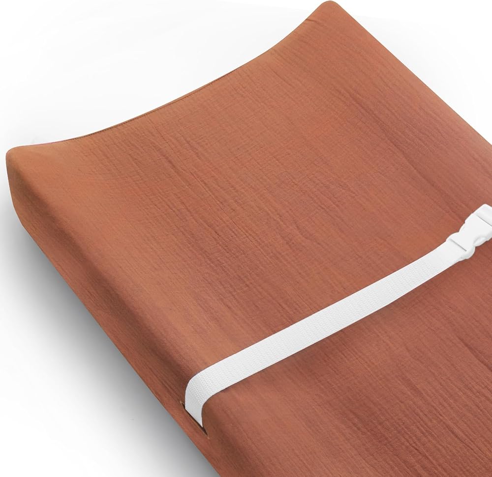 مخيط بدقة ومرن: يأتي غطاء وسادة تغيير الحفاضات مع فتحتين مخيطتين بدقة لأحزمة الأمان وهو مرن، مما يسمح بسهولة الإزالة.