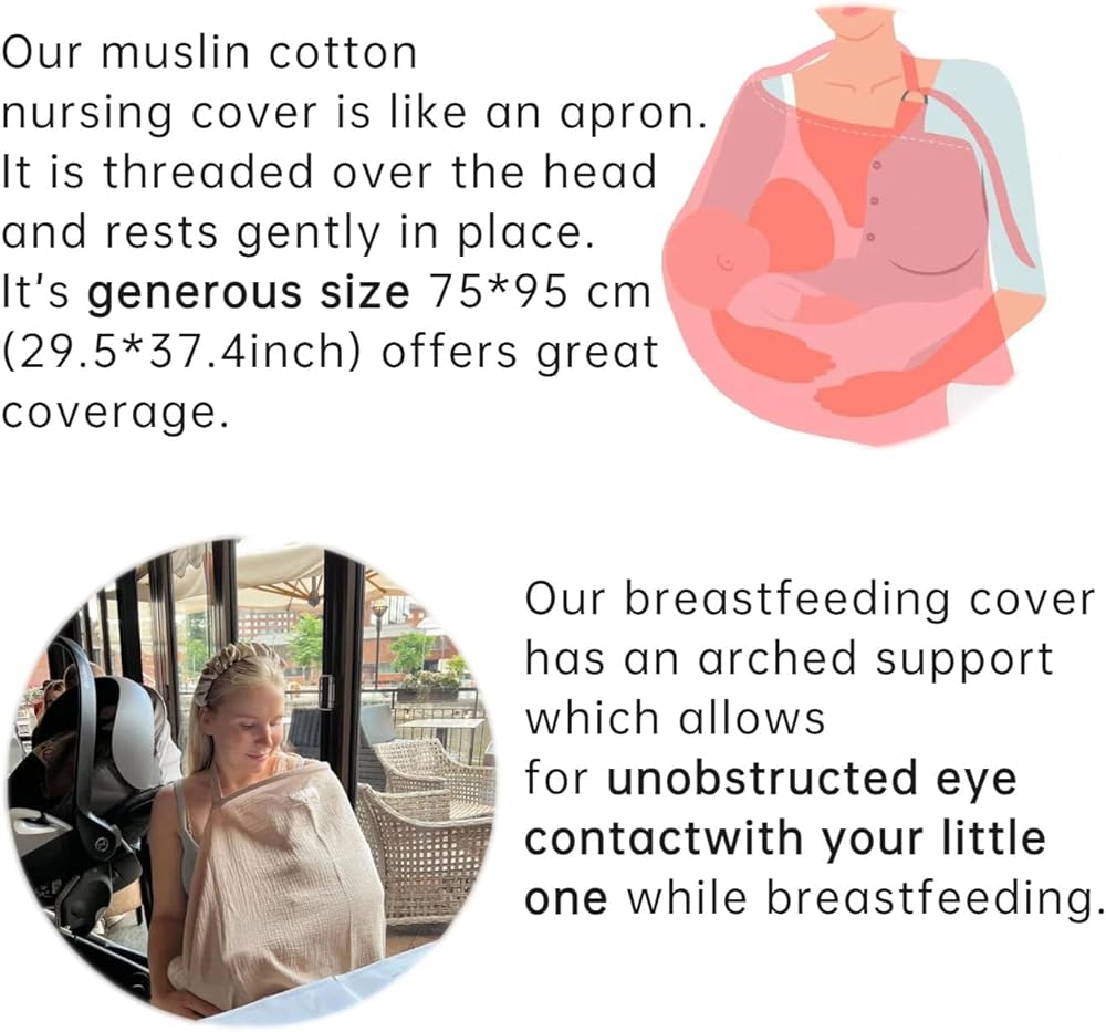 Rivacy and coverage are essential when nursing in public, and our Nursing Covers deliver exactly that.Experience the ultimate comfort and convenience during breastfeeding with our Super Soft & Breathable Muslin Cotton Nursing Cover.