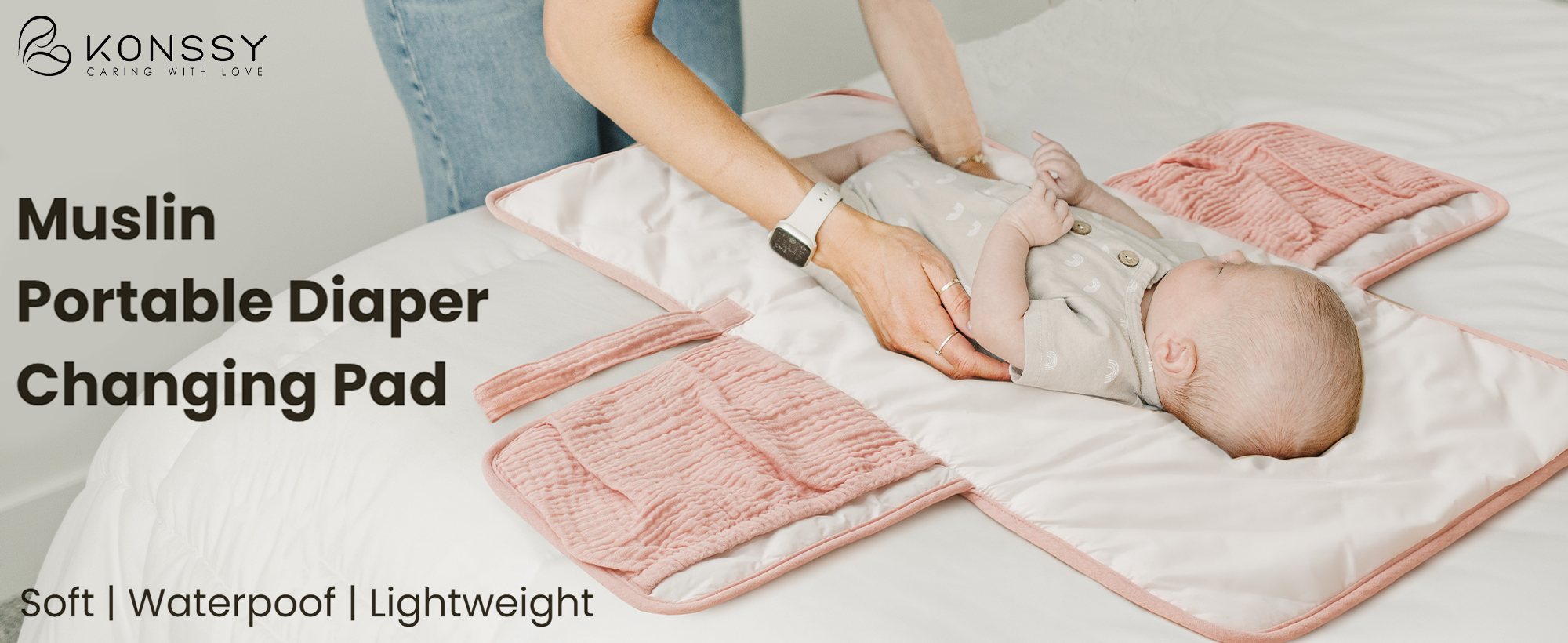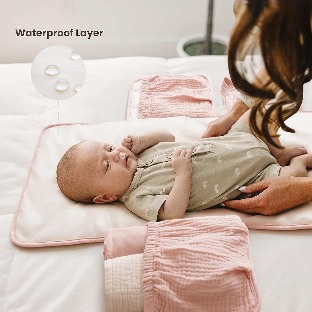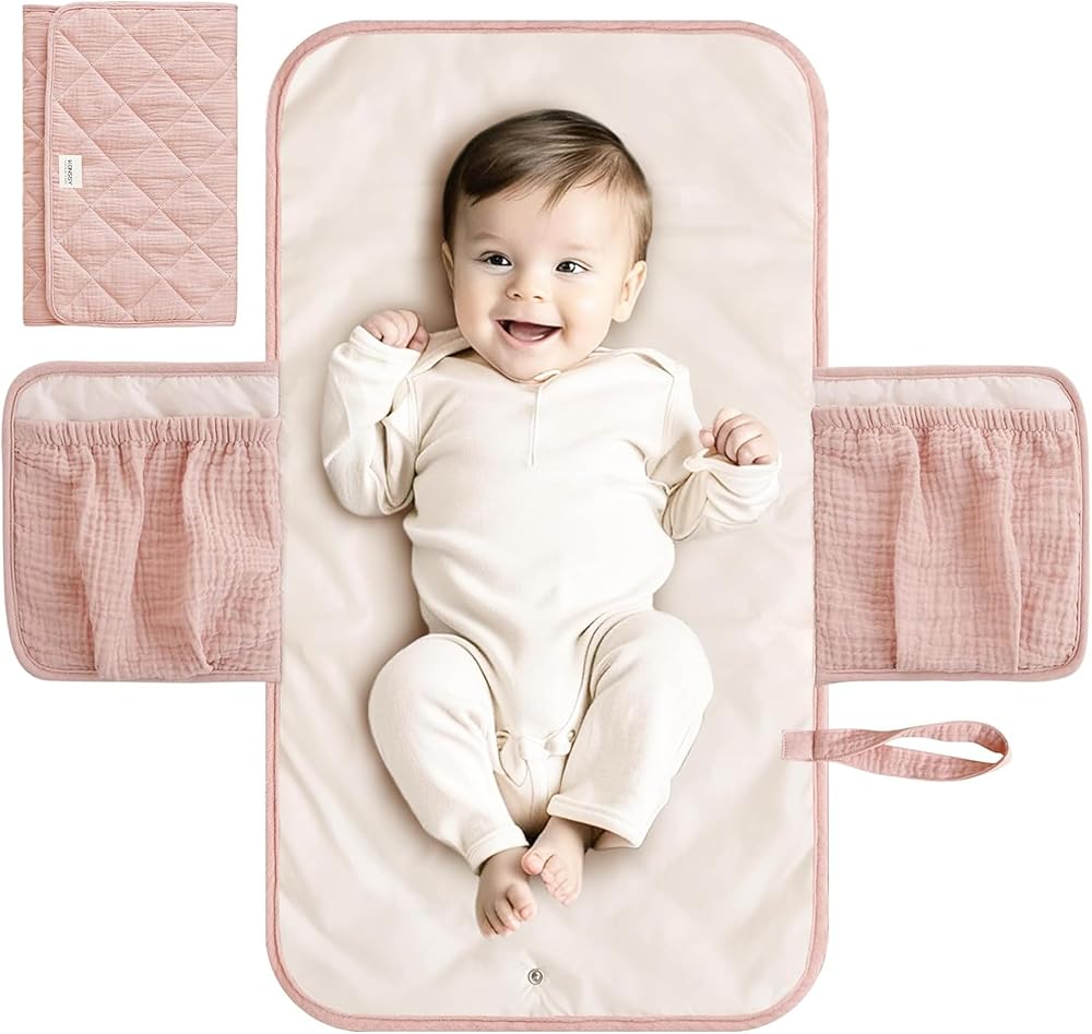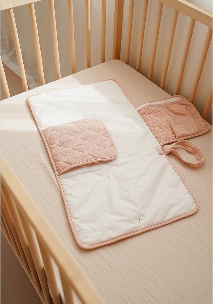 وسادة تغيير الحفاضات المحمولة من كونسي موسلين للأطفال، وسادة تغيير الحفاضات المحمولة المقاومة للماء مع جيوب للحفاضات، سجادة تغيير الحفاضات خفيفة الوزن وقابلة للطي أثناء السفر