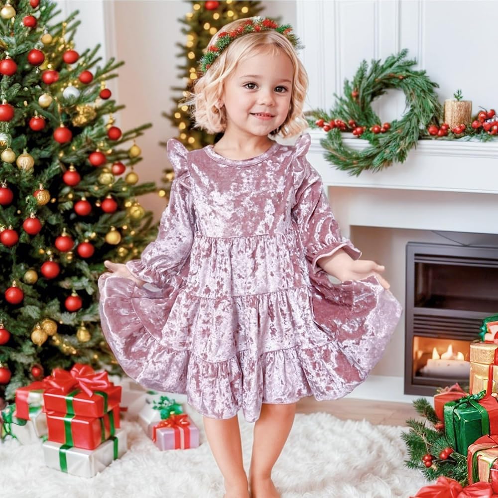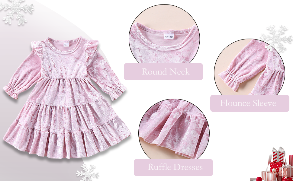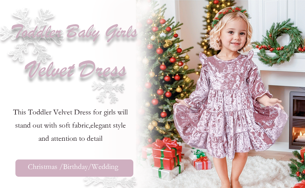 • 【الخامة: فستان عيد الميلاد للفتيات الصغيرات مصنوع من قطيفة خالية من التجاعيد. ناعم، مريح وقابل للتمدد، ملفوف للغاية.