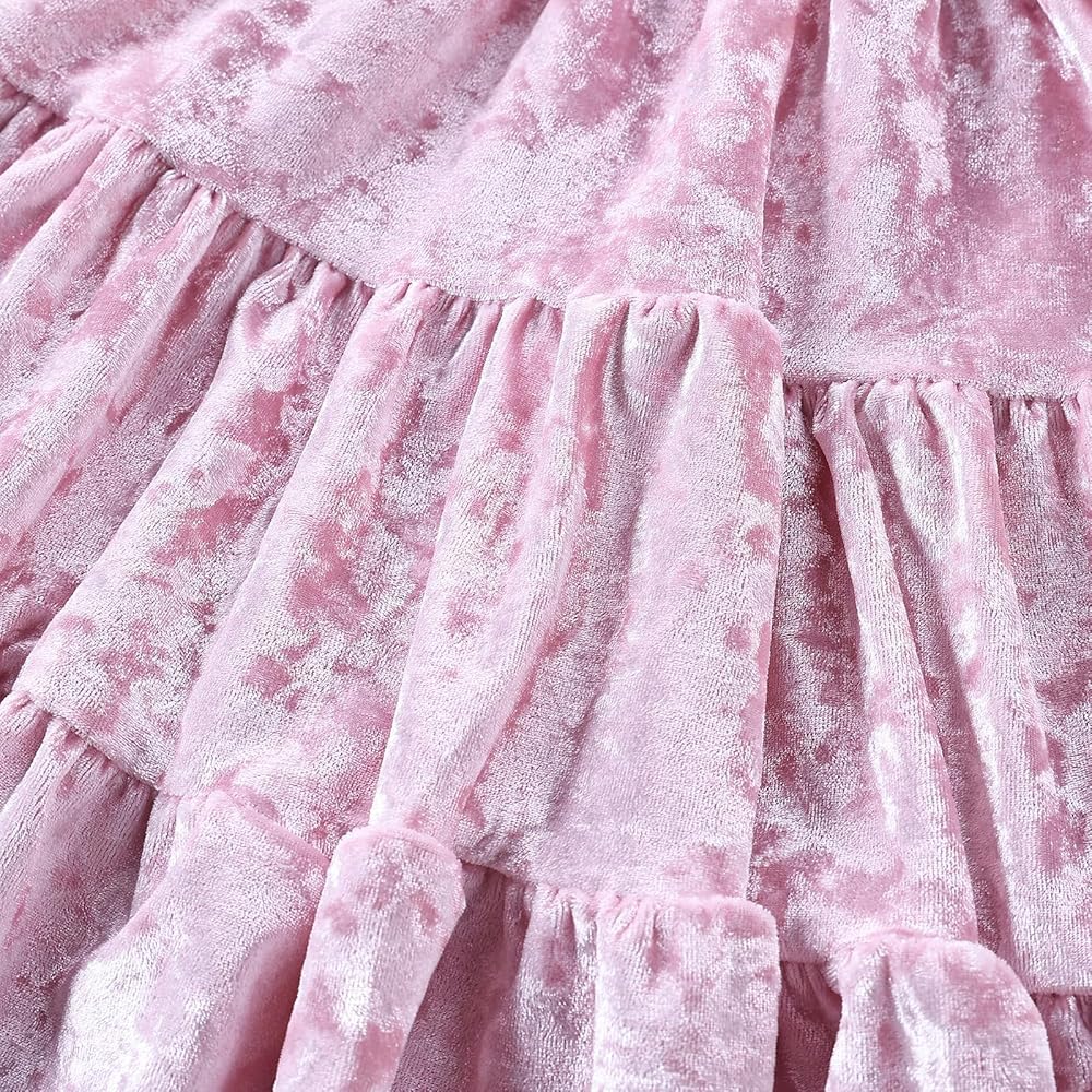 • 【التصميم】: فستان كاجوال للفتيات الصغيرات. لون موحد، أساور مكشكشة لطيفة، فستان شتوي بأكمام واسعة، بسيط وأنيق، فساتين كاجوال جميلة وأنيقة. القماش المخملي سيبقيك دافئًا بينما يظل أنيقًا في الخريف أو الشتاء.