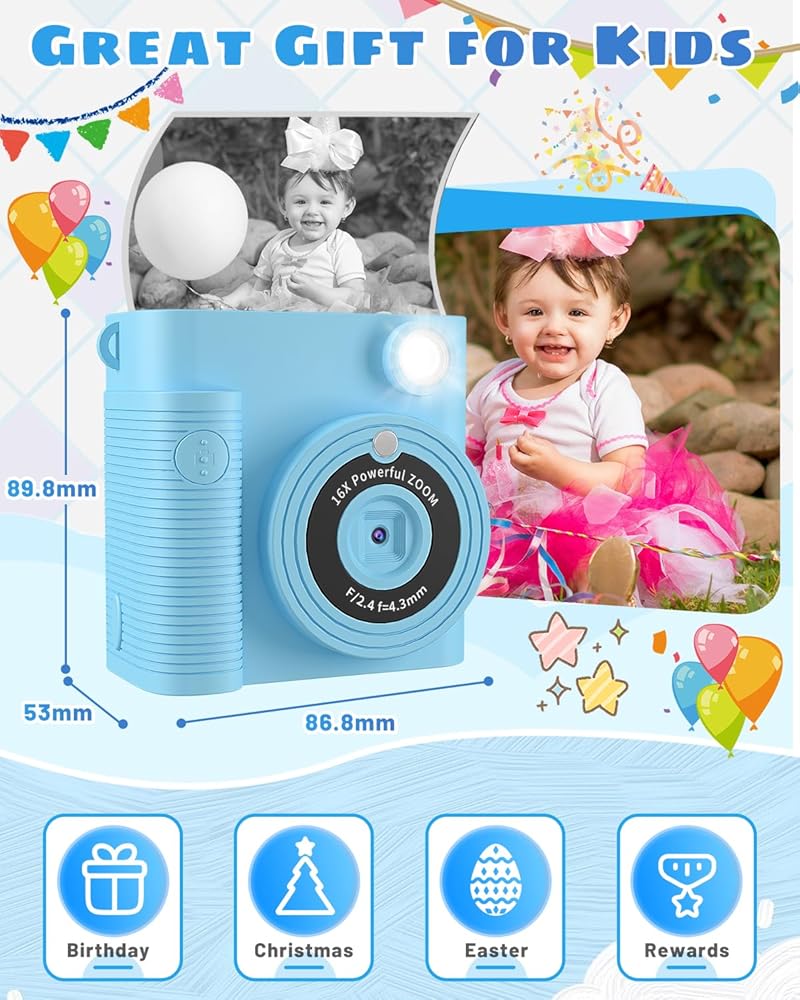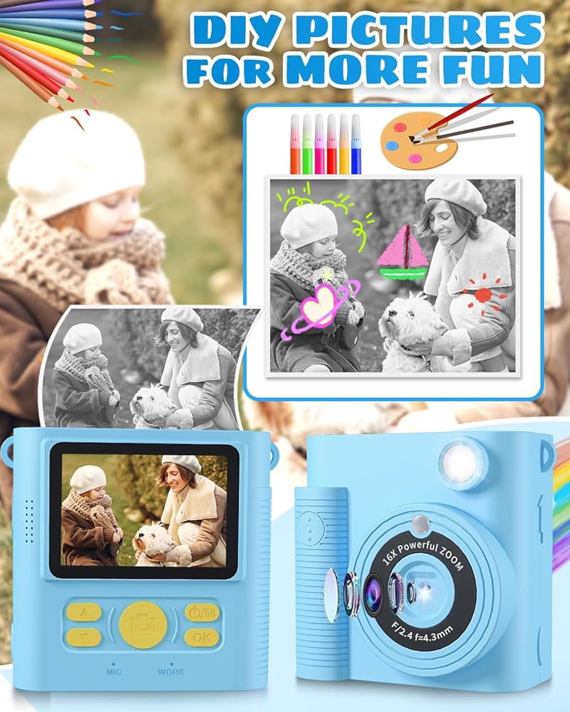• 【كاميرا فورية متعددة الوظائف】مجهزة بشاشة IPS مقاس 2.4 بوصة، وكاميرا الطباعة الفورية للأطفال لا تسمح للأطفال فقط بالتقاط صور بدقة 24 ميجابكسل ومقاطع فيديو بدقة 1080 بكسل، والتشغيل، ولكن تحتوي أيضًا على مشغل موسيقى وألعاب وتأثيرات خاصة أخرى تجعل صورهم أكثر متعة. مضحكة ومثيرة. يمكن لكاميرا الطباعة الفورية للأطفال أن تلبي جميع احتياجاتك للترفيه وإطلاق العنان لإبداع الأطفال.