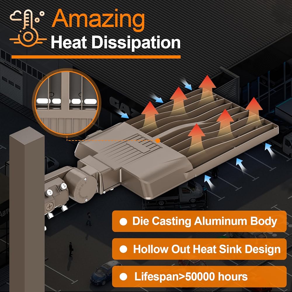 تركيبات من الدرجة التجارية: مدخل تيار متردد 100-277 فولت. تستخدم مصابيح صندوق الأحذية LED التجارية ألومنيومًا متينًا من الدرجة الصناعية للجسم والمحركات القوية. يتميز المصباح بتبديد حرارة ممتاز لضمان 50,000 ساعة من التشغيل على المدى الطويل