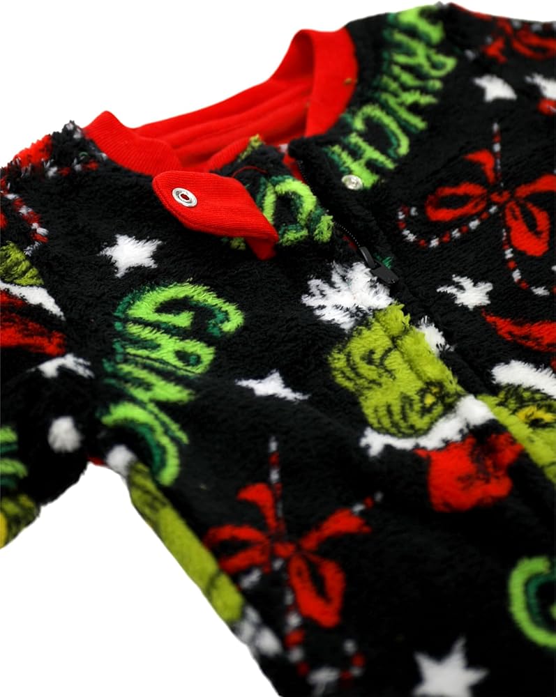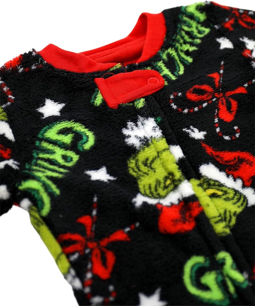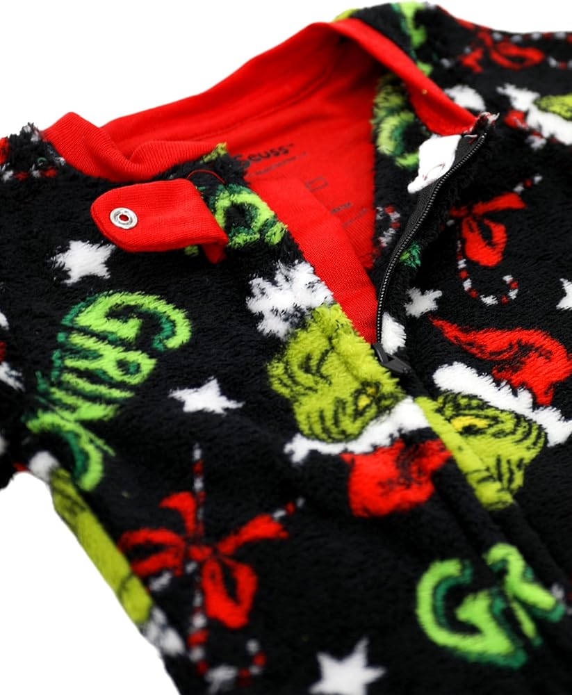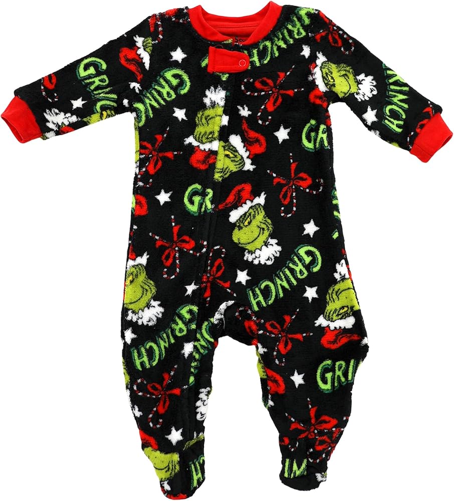 Matching Family Sets: Get cozy with Dr. Seuss' the Grinch themed pajama sets for the whole family, including a footed blanket sleeper for infants