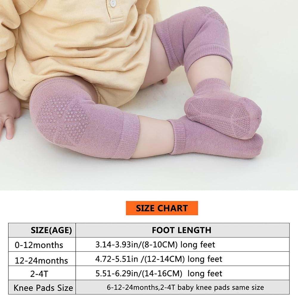 Comfortable and soft: baby boys girls crawling knee pads non-slip socks,Toddler socks, delicate and Soft, socks with flat seam head, comfortable, easy to put on and take off, no strangulation of baby's legs, perfect fit for baby's legs and feet. Baby crawling knee pads: babycrawling socks Protecting babies knees knee pads,designed for babies who are starting to learn to crawl, they are comfortable to wear and can keep babies' knees from getting scratched, making them braver to learn to crawl, and also make great baby shower gifts. Material: cotton Color: as pictures shown Size:normally for 6 months to 24 months baby, and the foot socks are suitable for 0 -24 months baby(Suitable for foot length 8-12 cm) Package includes:non-slip socks 3 pairs,non-slip knee pads 3 pairs Warm notes: 1.Please allow slight size error due to manual measurement. 2.To keep baby knee pads and socks soft and quality, we recommend that you wash them by hands.