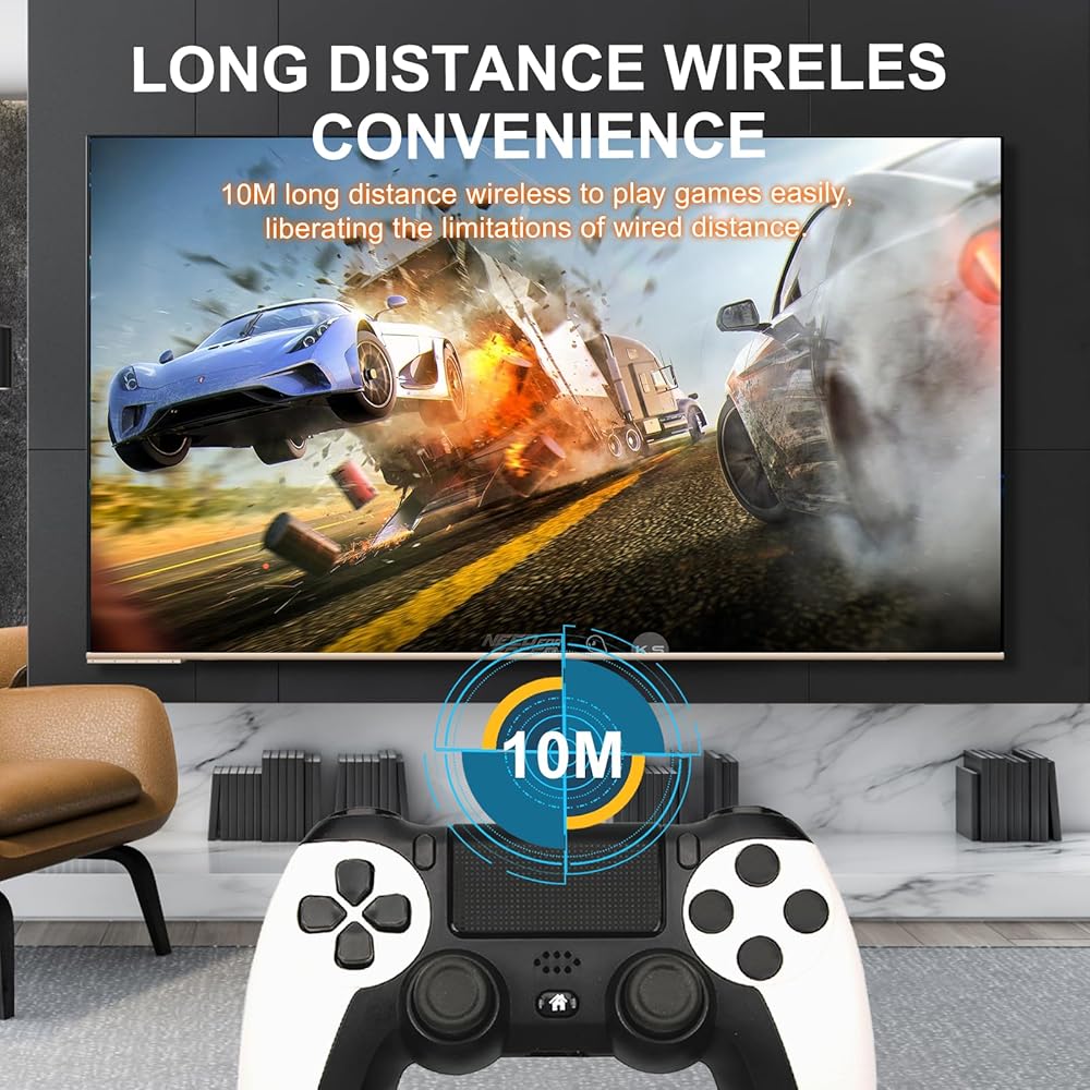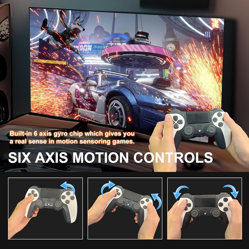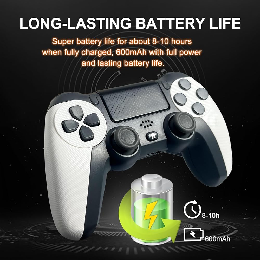 • 【راحة لاسلكية】: قل وداعًا للكابلات المتشابكة! تضمن وحدة التحكم PS اللاسلكية الخاصة بنا اتصالاً سلسًا للعب بدون متاعب، مما يمنحك حرية التحرك والانغماس الكامل في الحدث