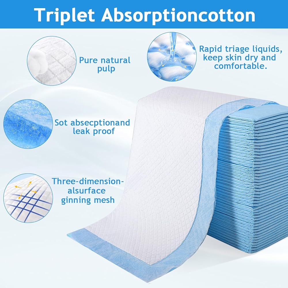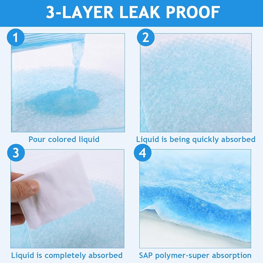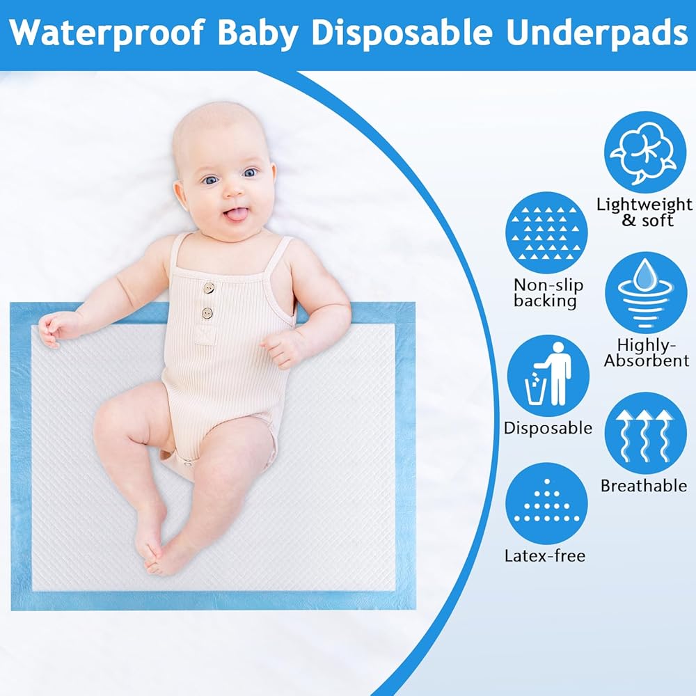 50 عبوة من وسادات تغيير الحفاضات للاستعمال مرة واحدة، وسادات داخلية للاستعمال مرة واحدة للأطفال مقاس 60.96 × 45.72 سم، وسادة تغيير حفاضات ماصة مقاومة للماء، مقاومة للتسرب من 3 طبقات، مسامية وصديقة للبشرة، تحافظ دائمًا على جفاف الجلد