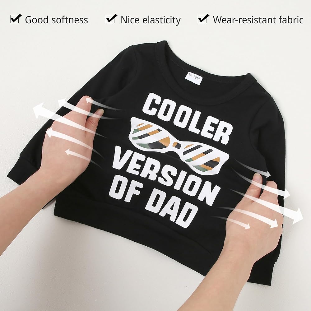 • Newest Design: Our boys toddler clothes features a round neck and fashion classic letter design, such as"COOLER VERSION OF DAD", "AiN'T NO MAMA LiKe THE ONE I GOT", "PRETTY FLY FOR A LITTLE GUY" cute clothes for toddler boys, that sets your little one apart and makes him look more stylish and handsome