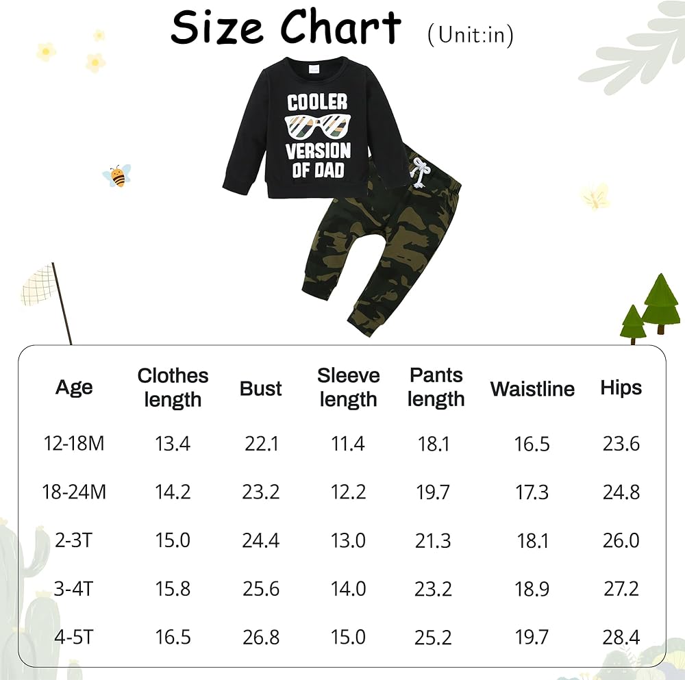 • Size: The boys outfits fall suit for baby boy clothes 12-18 months,baby boy clothes 18-24 months, boy clothes 2t, boy clothes 3t-4t sets ,and toddler boys clothes 4-5t, ensuring an ideal fit for your growing baby boy. Please refer to our size chart to find the best size for your little boy