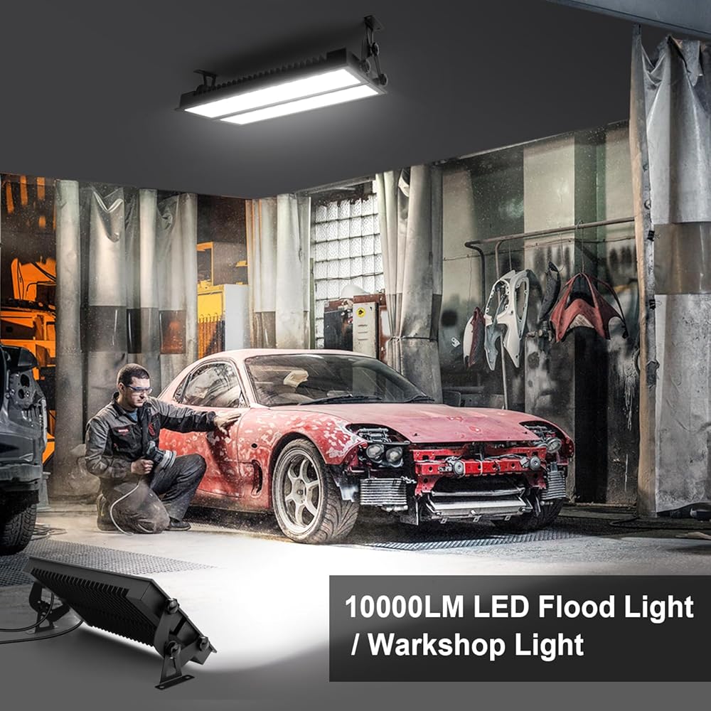 2 حزمة ضوء متجر LED للمرآب، 120 وات 10000 لومن 5000 ك ضوء النهار LED ضوء خليج عالي، IP66 ضوء فيضانات خارجي مقاوم للماء مع قابس أمريكي كابل 5FT لورشة العمل ساحة المرآب مصنع منطقة الإضاءة