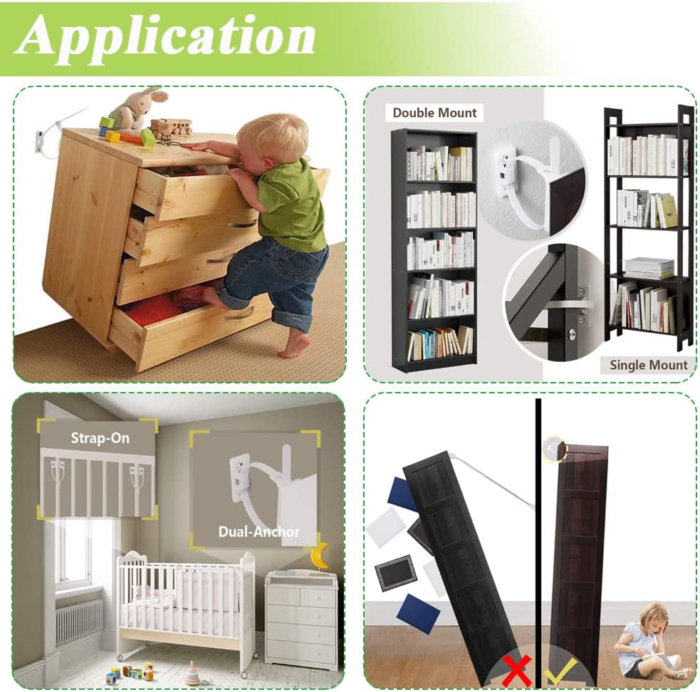 1. Comes with 15 adjustable safety strap sets, to meet your multiple needs in the home. Note: 2 straps are required per piece of furniture.