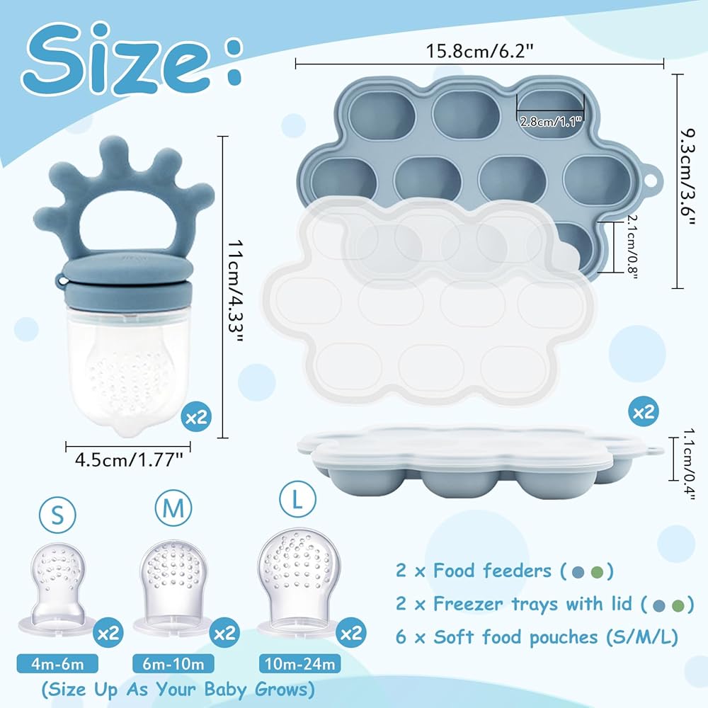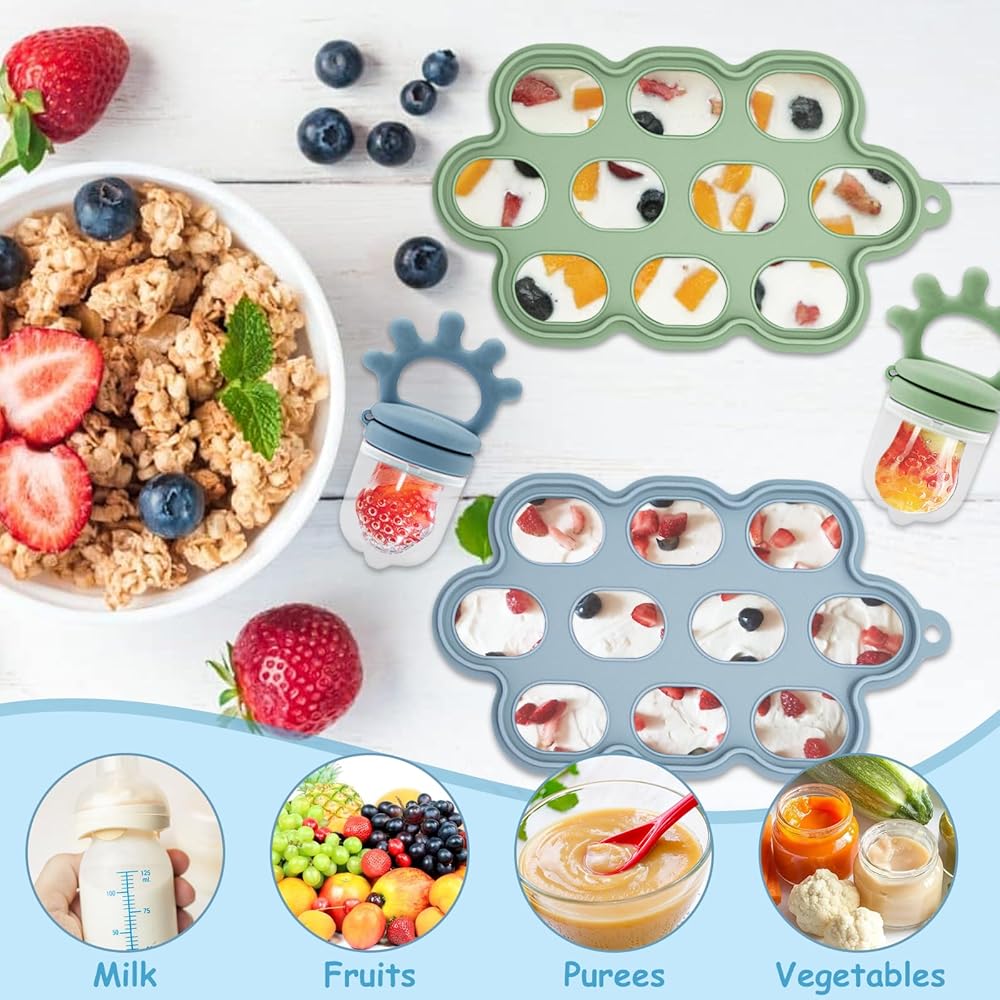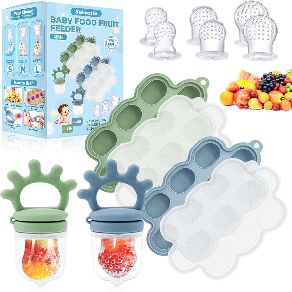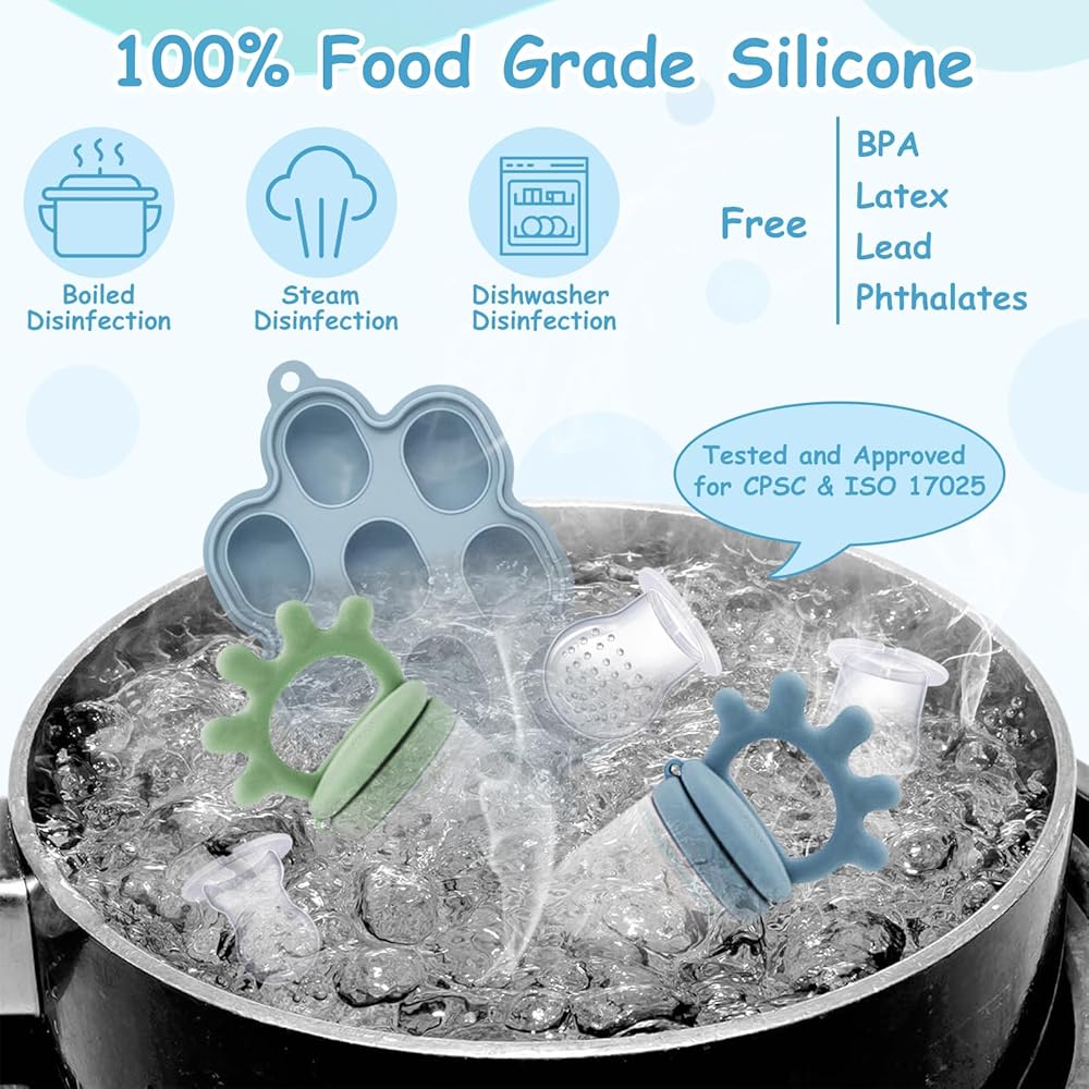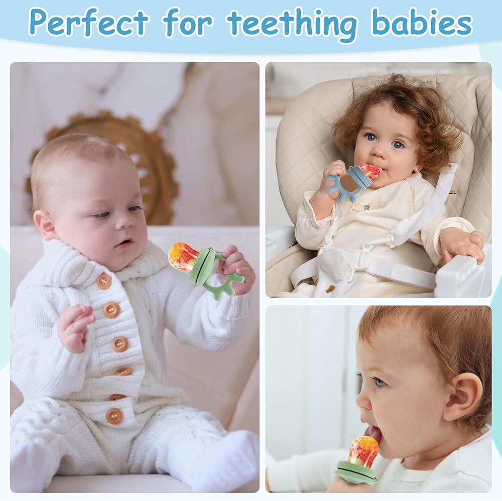 وحدة تغذية فواكه الأطفال، 2 عبوة من قوالب مصاصات حليب الثدي للتسنين، 6 لهايات طعام إضافية لتخفيف التسنين، حاويات طعام الأطفال لتسنين الأطفال الصغار، ألعاب التسنين من السيليكون