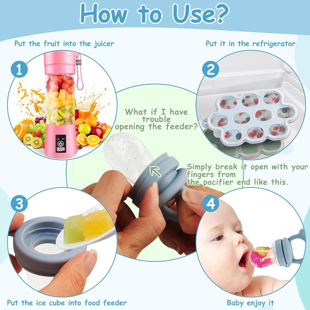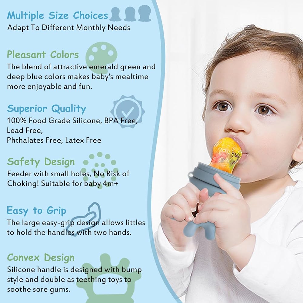 【نمو صحي】: تم تصميم وحدة تغذية فواكه الأطفال الخاصة بنا المكونة من ستة أكياس سيليكون مختلفة الحجم بفتحات صغيرة تسمح فقط بمرور قطع الطعام الصغيرة وسهلة الهضم، مما يضمن سلامة الطفل. لا يحتوي سطح المنتج على حواف حادة، مما يوفر تجربة تناول طعام آمنة للطفل.