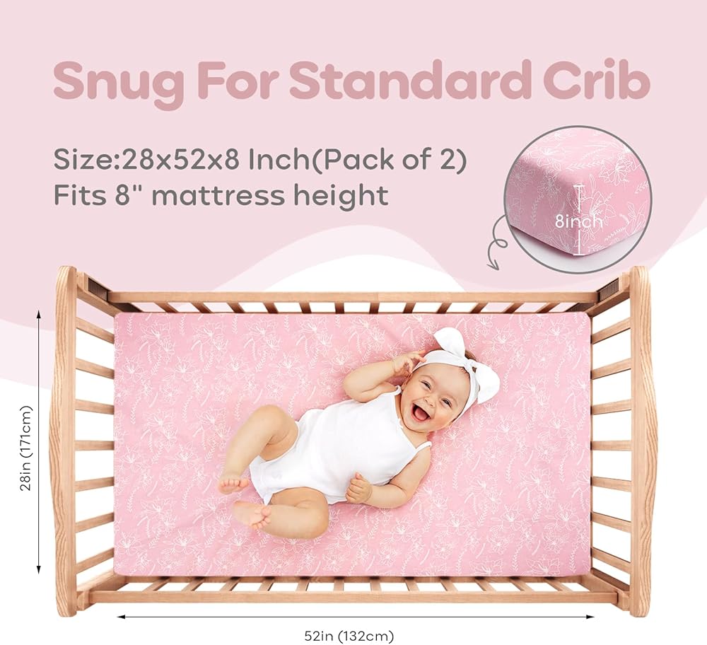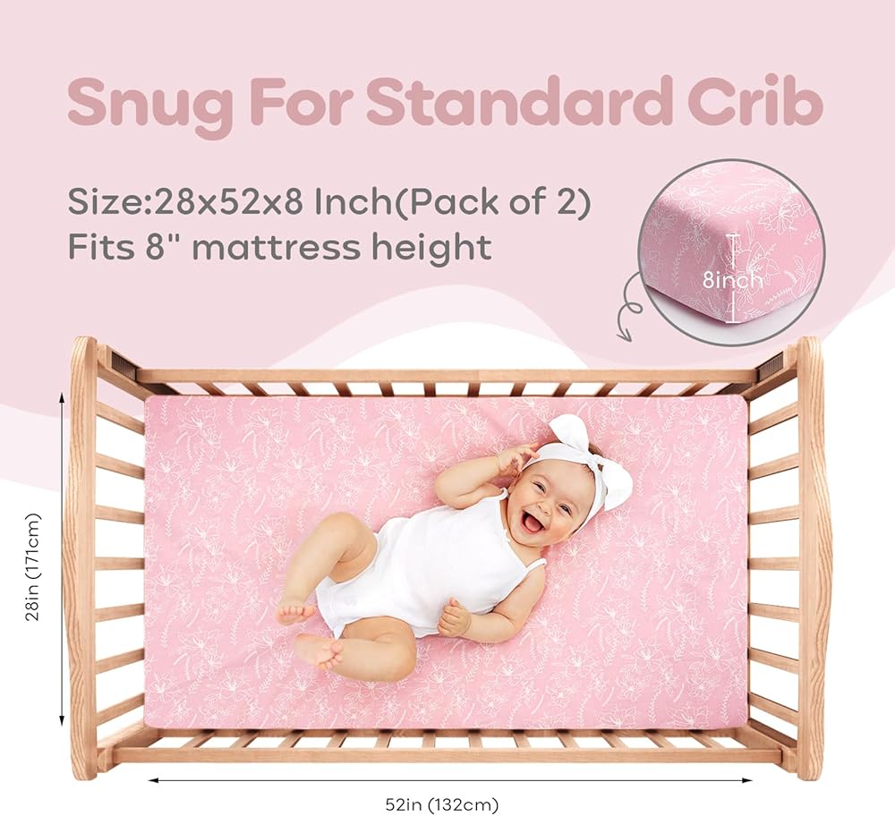 ملاءمة محكمة وآمنة: تم تصميم ملاءات سرير الأطفال الخاصة بنا لتناسب معظم مراتب أسرّة الأطفال القياسية بمقاس 52 × 28 × 8 بوصة، وتوفر ملاءات سرير الأطفال هذه ملاءمة محكمة. تضمن المرونة الممتازة والامتداد الإضافي لملاءات سرير الأطفال القطنية لدينا سطح نوم أكثر أمانًا لطفلك.