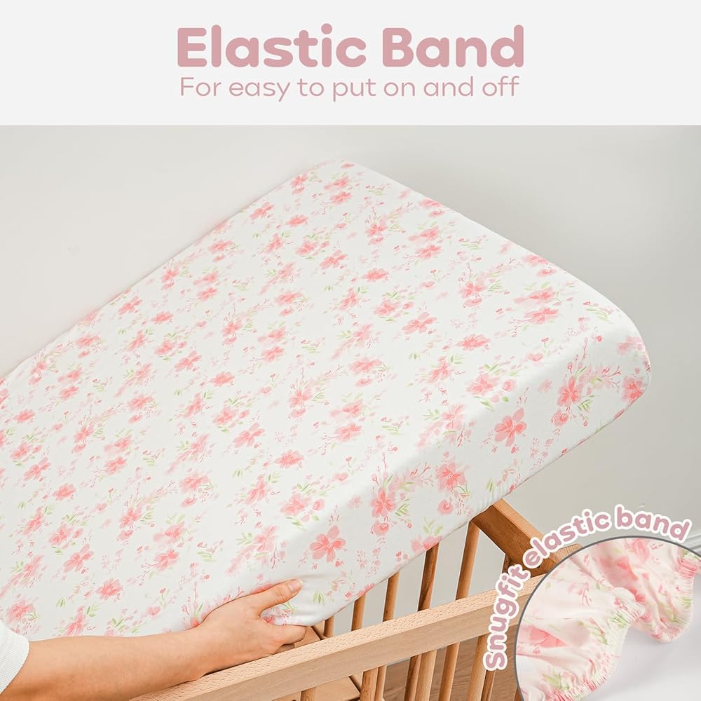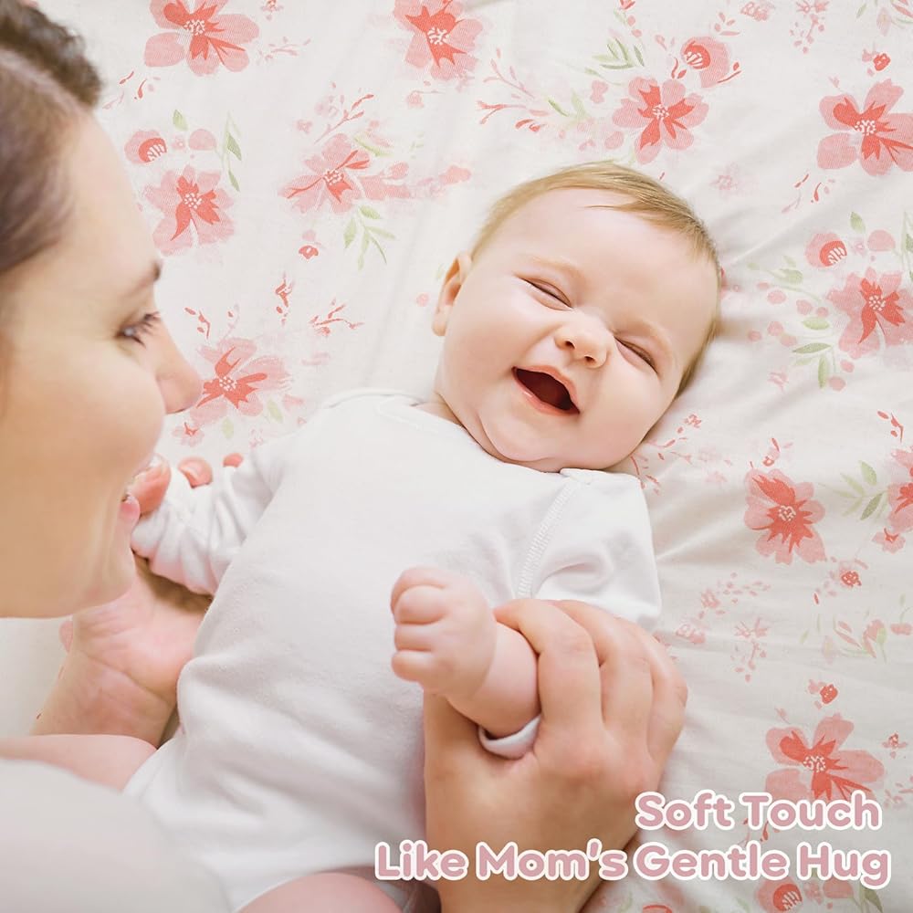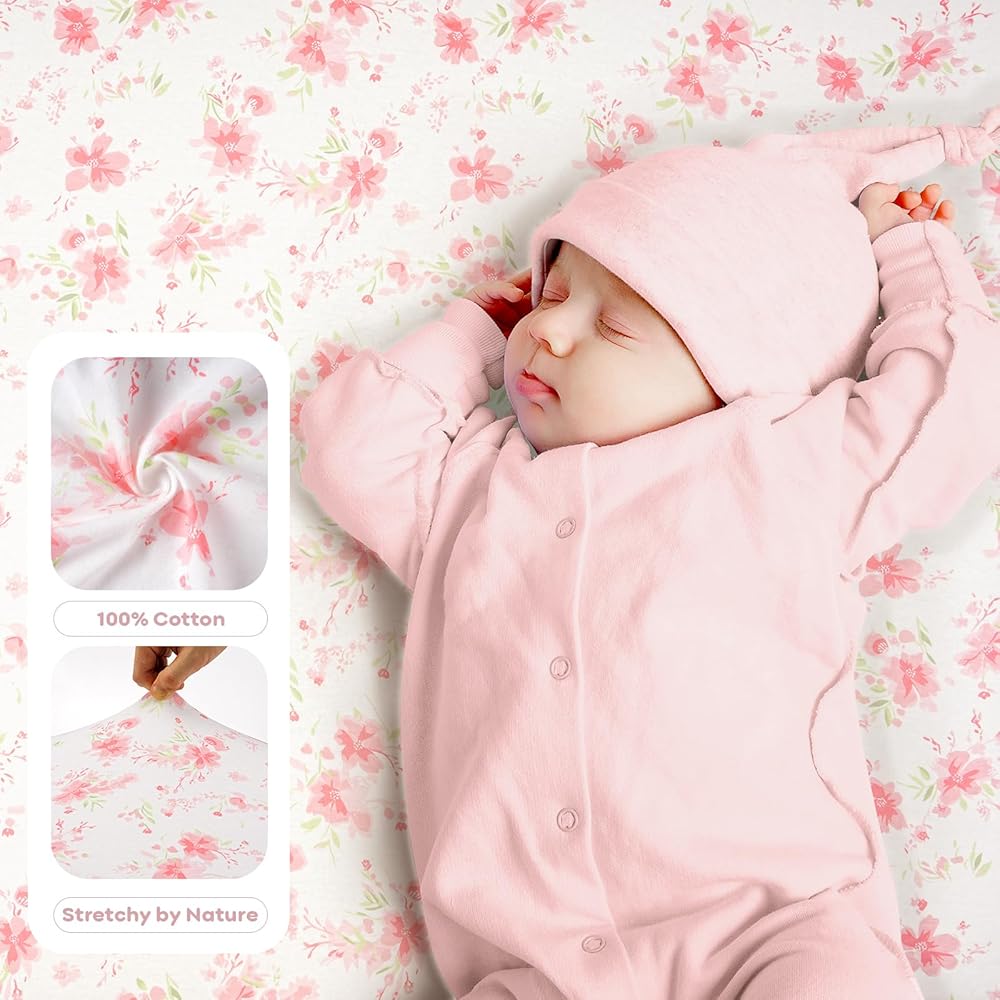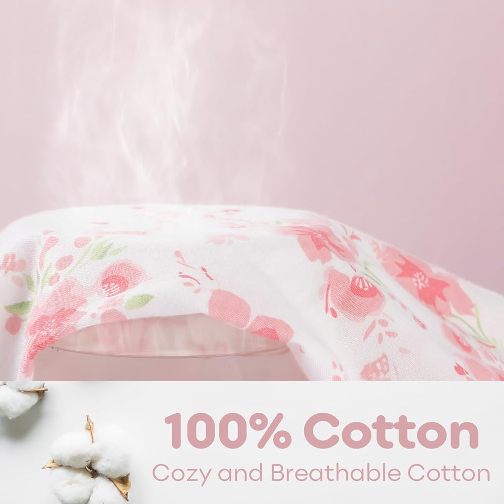 فائقة النعومة: ملاءات سرير الأطفال الخاصة بنا مصنوعة من القطن بنسبة 100% مع أقصى قدر من التهوية ومغزولة لتوفير لمسة ناعمة ولطيفة، ولا تسبب ملاءات سرير الأطفال الملائمة لدينا تهيج بشرة الطفل الحساسة. تسمح الألياف الطبيعية بتدفق هواء ممتاز، مما يحافظ على نوم طفلك مريحًا طوال الليل.