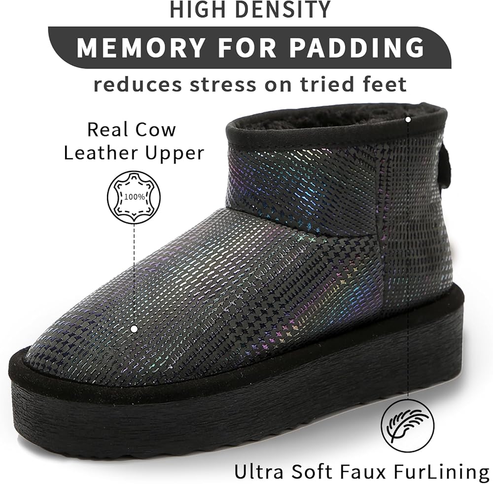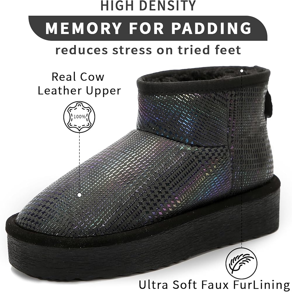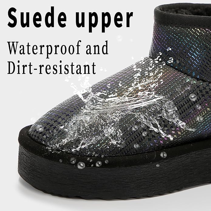 أحذية الثلج الفاخرة من جلد البقر: مصنوعة من جلد عالي الجودة، توفر أحذية الثلج لدينا مظهرًا أنيقًا ومتانة طويلة الأمد. بالإضافة إلى ذلك، يضمن التصميم المقاوم للماء لهذه الأحذية الحماية من رذاذ الماء.