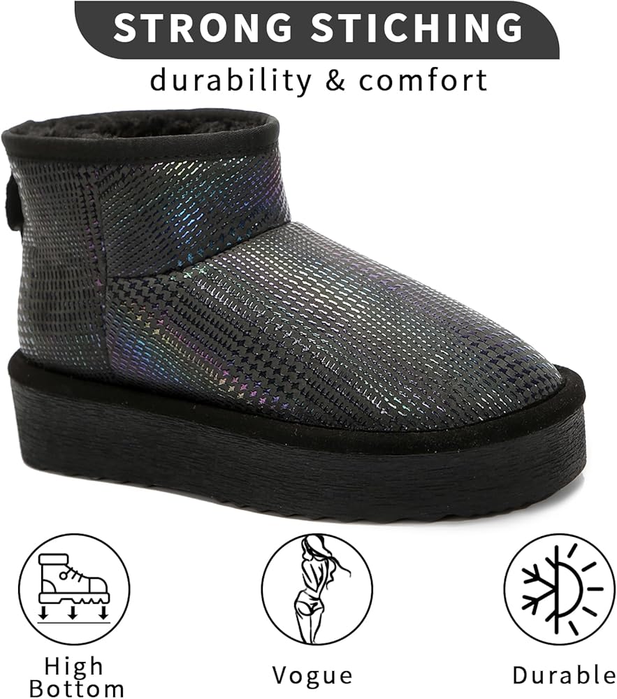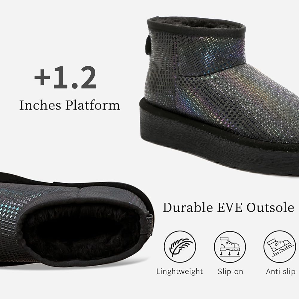 أحذية كلاسيكية ذات نعل سميك: مع تصميم منصة EVA مقاس 1.9 بوصة، لا تعمل أحذية الشتاء الخاصة بنا على إطالة ساقيك فحسب، مما يضيف ارتفاعًا إضافيًا ولكنها توفر أيضًا توسيدًا رائعًا، مما يجعلك أكثر نحافة وأطول في الشتاء.