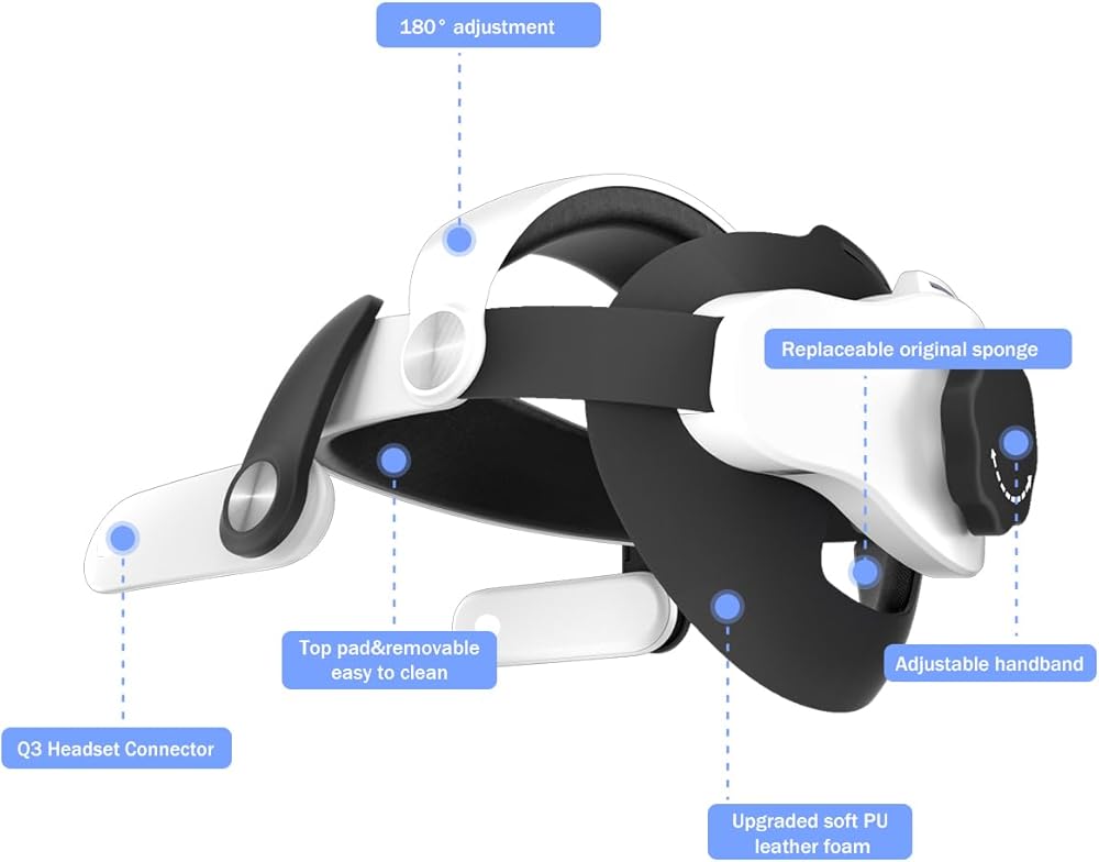 حزام رأس مريح لـ Oculus Quest 3S & Quest 3: A3 Newset تصميم مريح، يمكن تعديله بزاوية 180 درجة ليناسب أي وضع مريح، ويناسب جميع أشكال الرأس والزوايا المختلفة