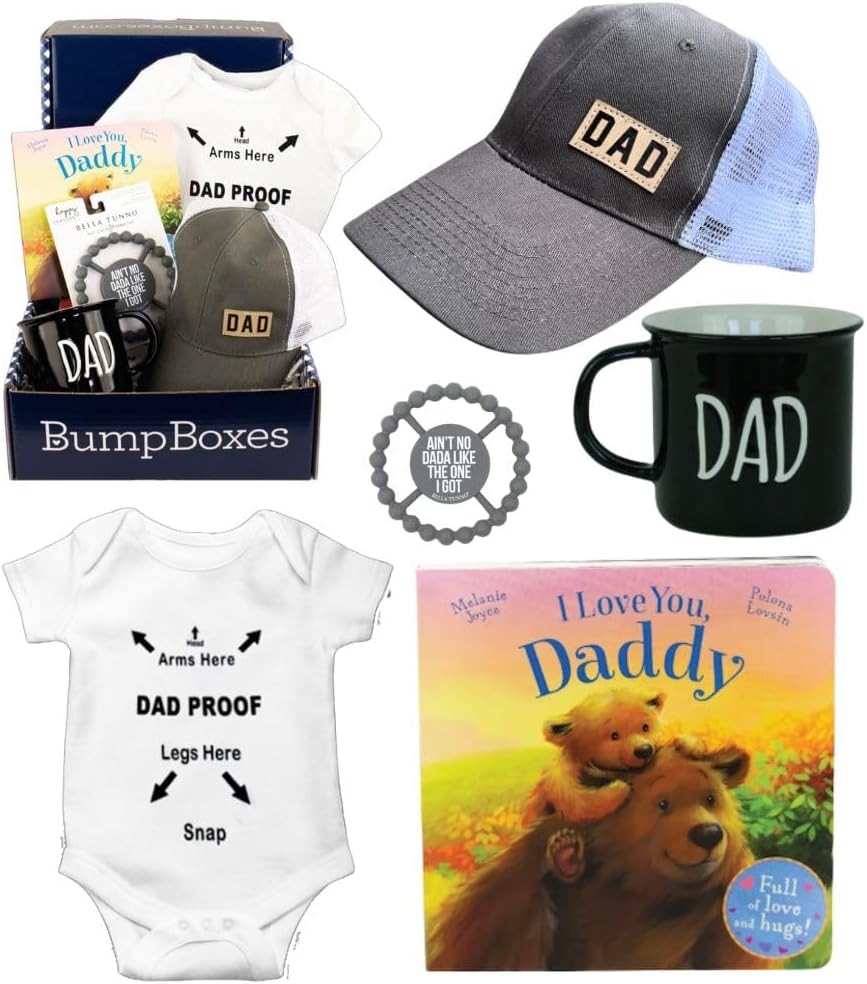 The Dad Box by Bump Box is the perfect gift for new and soon-to-be dads. To Celebrate a new baby and becoming a father! Preparing for birth is the most exciting time for both parents-to-be and our Dad Box helps make Dad feel extra special! Daddy may not be experiencing pregnancy in a literal sense, but as a soon-to-be father, his life is about to change, too so let's prep him for some amazing diaper duty with the perfect gift box. Daddy will have everything he needs to celebrate his new role as DAD!