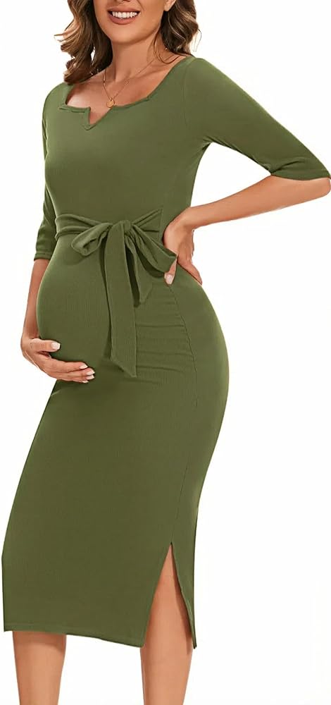 • فساتين الأمومة الأنيقة: مثالية لحفلات الزفاف، أو مناسبات إشبينة العروس، أو التجمعات الرسمية. يوفر خط العنق المربع الأنيق ونصف الأكمام الراحة والأناقة ليومك الخاص