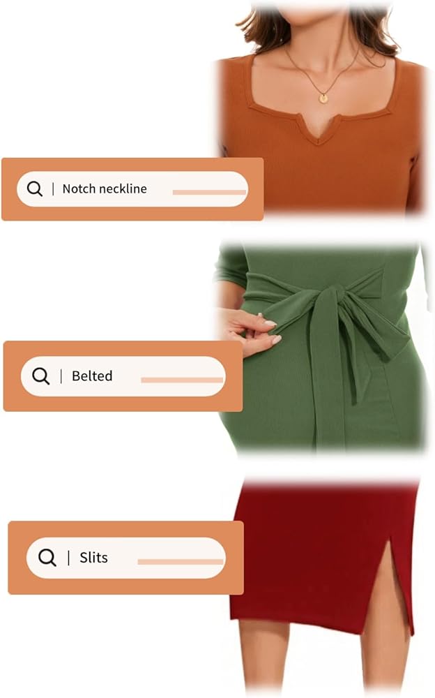 • الراحة والذوق: احتضني فستان الحمل المضلع القابل للتمدد مع فتحات جانبية وخصر مربوط يبرز شكلك