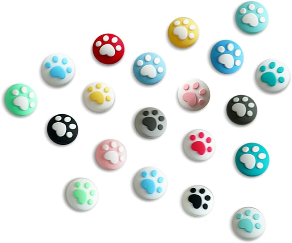 Various colors - 40 pieces thumb grips caps covers of 10 different colors, fresh and cute, each one is printed with a cat paw pattern, cute and warm.