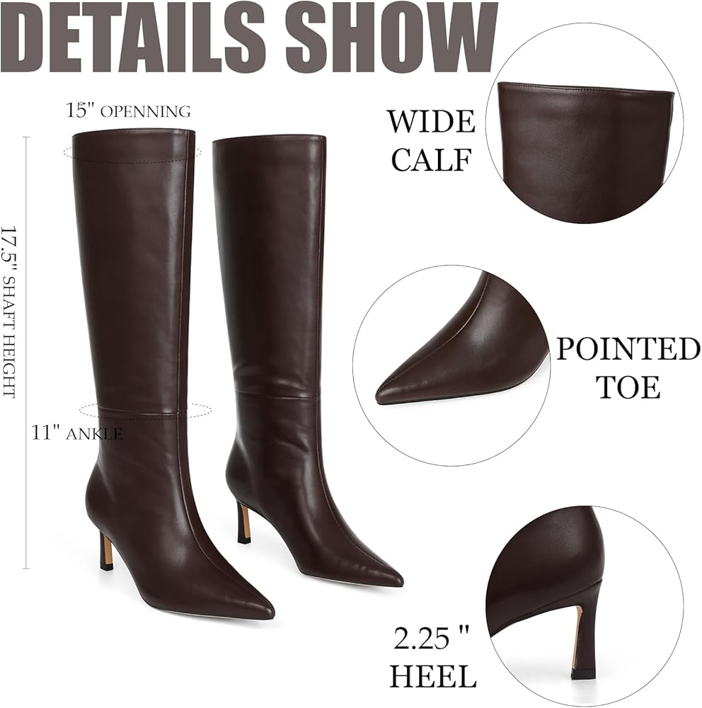 ارتفاع كعب الأحذية النسائية حتى الركبة: تتميز الأحذية النسائية العالية حتى الركبة بارتفاع كعب يبلغ 2.25 بوصة. يوفر هذا الحذاء الطويل للسيدات ذو الكعب المنخفض مزيجًا مثاليًا من الأناقة والراحة، مما يجعله مثاليًا لفترات طويلة من الارتداء طوال اليوم. سواء كنت تتجول في المدينة أو تحضر حدثًا، فإن أحذية الساق الواسعة للنساء ذات الارتفاع المدروس تضمن بقاء قدميك مرتاحة بينما لا تزال تبدو أنيقة.