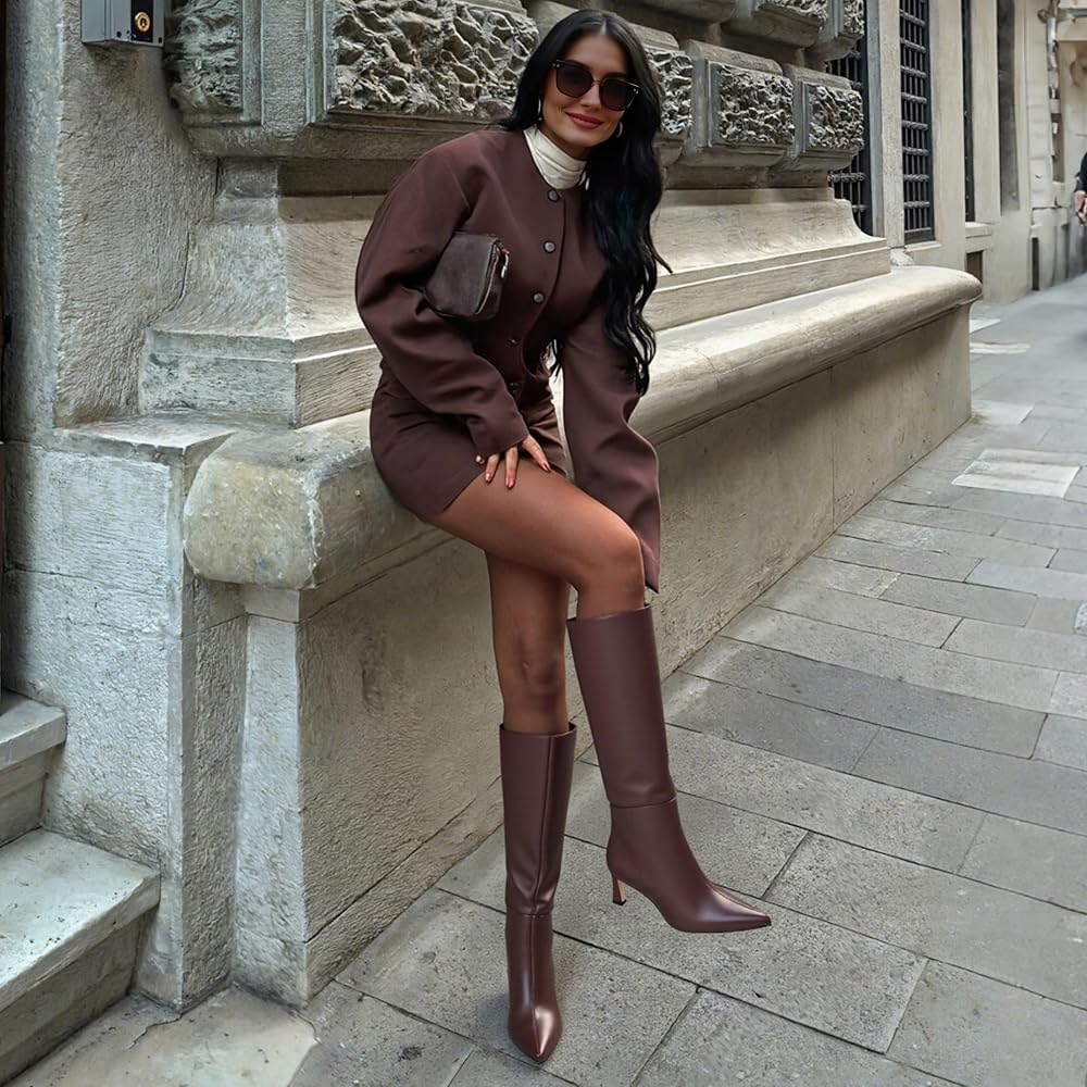 أحذية طويلة أنيقة: هذه الأحذية النسائية ذات الكعب العالي مصنوعة بخبرة من الجلد السويدي الصناعي، وتكملها بطانة من القماش الناعم. تضمن المواد المستخدمة ملاءمة فخمة ومريحة، مما يجعل الأحذية ذات الركبة العالية والواسعة مناسبة لأي موسم. ستجد الأحذية الطويلة جذابة بنفس القدر سواء تم ارتداؤها في الخريف أو الشتاء أو الربيع أو الصيف، وذلك بفضل الأحذية المدببة ذات المقدمة المدببة والتي تسمح بمرور الهواء ولكنها عازلة.