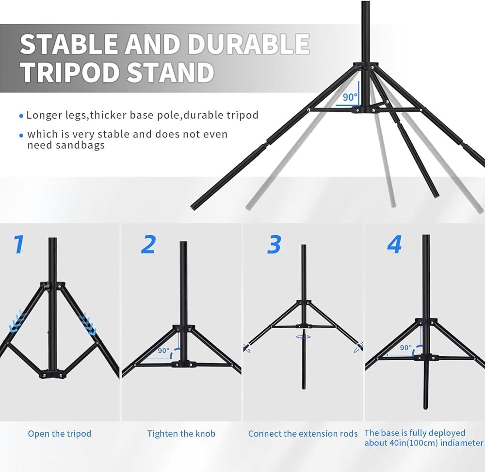 مادة عالية الجودة: تستخدم مجموعة حامل خلفية الصورة مواد معدنية عالية الجودة وتقلل من استخدام البلاستيك. قم بتوسيع شريط القدم لجعله أكثر استقرارًا
