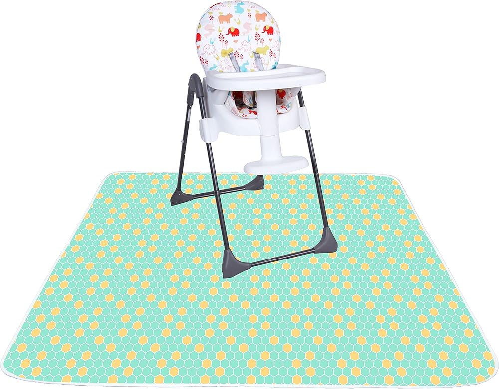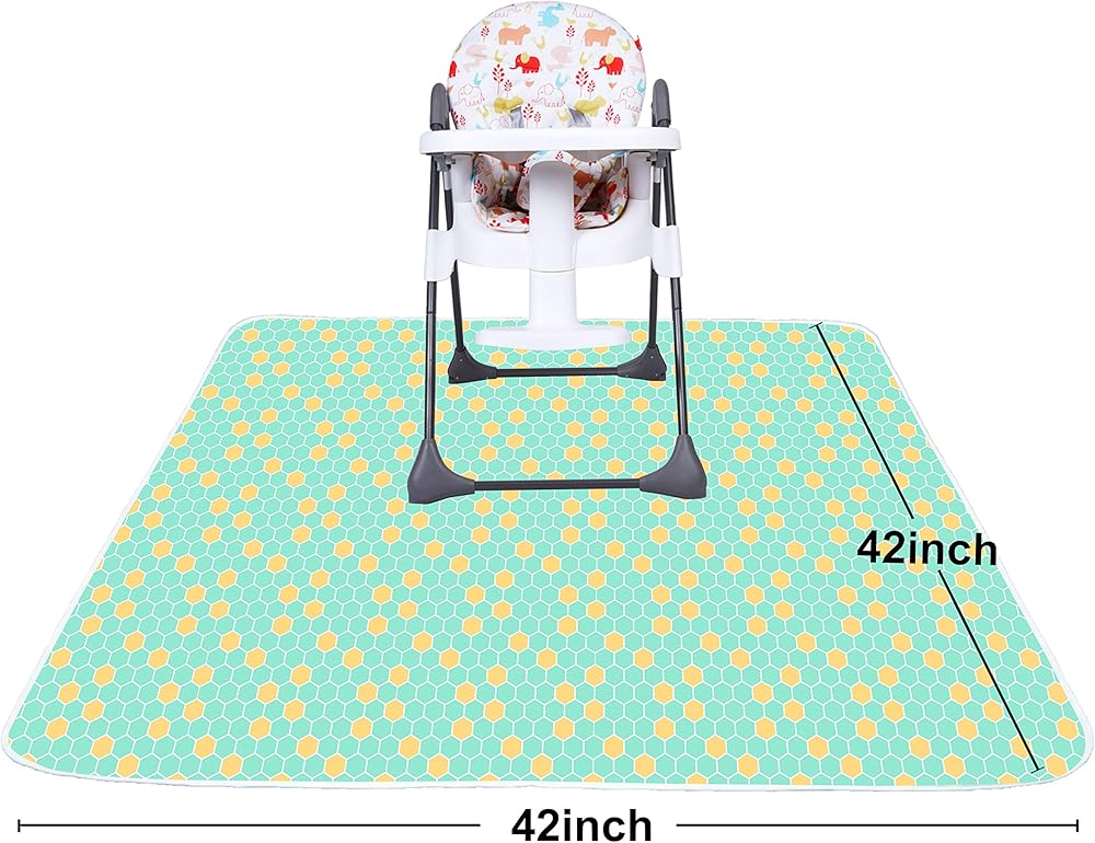 - مقاس كبير - 42 بوصة × 42 بوصة. ستغطي السجادة الكبيرة منطقة التنظيف الموجودة أسفل كرسي طفلك المرتفع بسهولة.