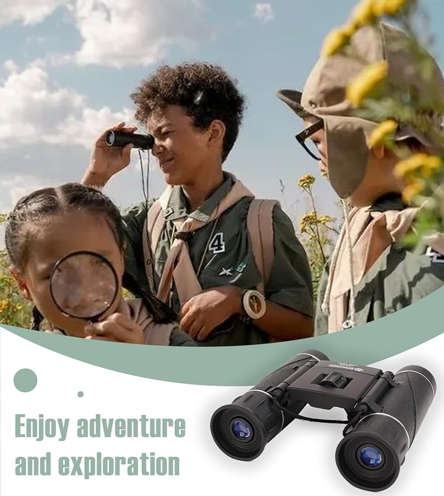 【Powerful Bonocular】unlike other toy binoculars for kids which are intended to be just a kids camping toy or camping toy, our kids binoculars ages 4-8 features all glass optics which provides clear and sharp images with minimum distortion. The 8X magnification with the 6.8° viewing angle make this binocular a great binocular for hiking, bird watching binoculars for kids, camping toys for kids ages 4-8 and nature exploration toys. Travel with this children binoculars with the kids and let them explore the world.
