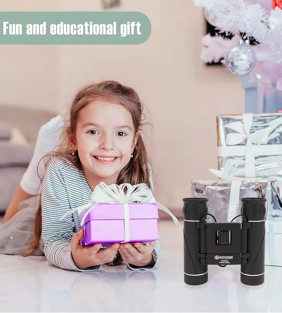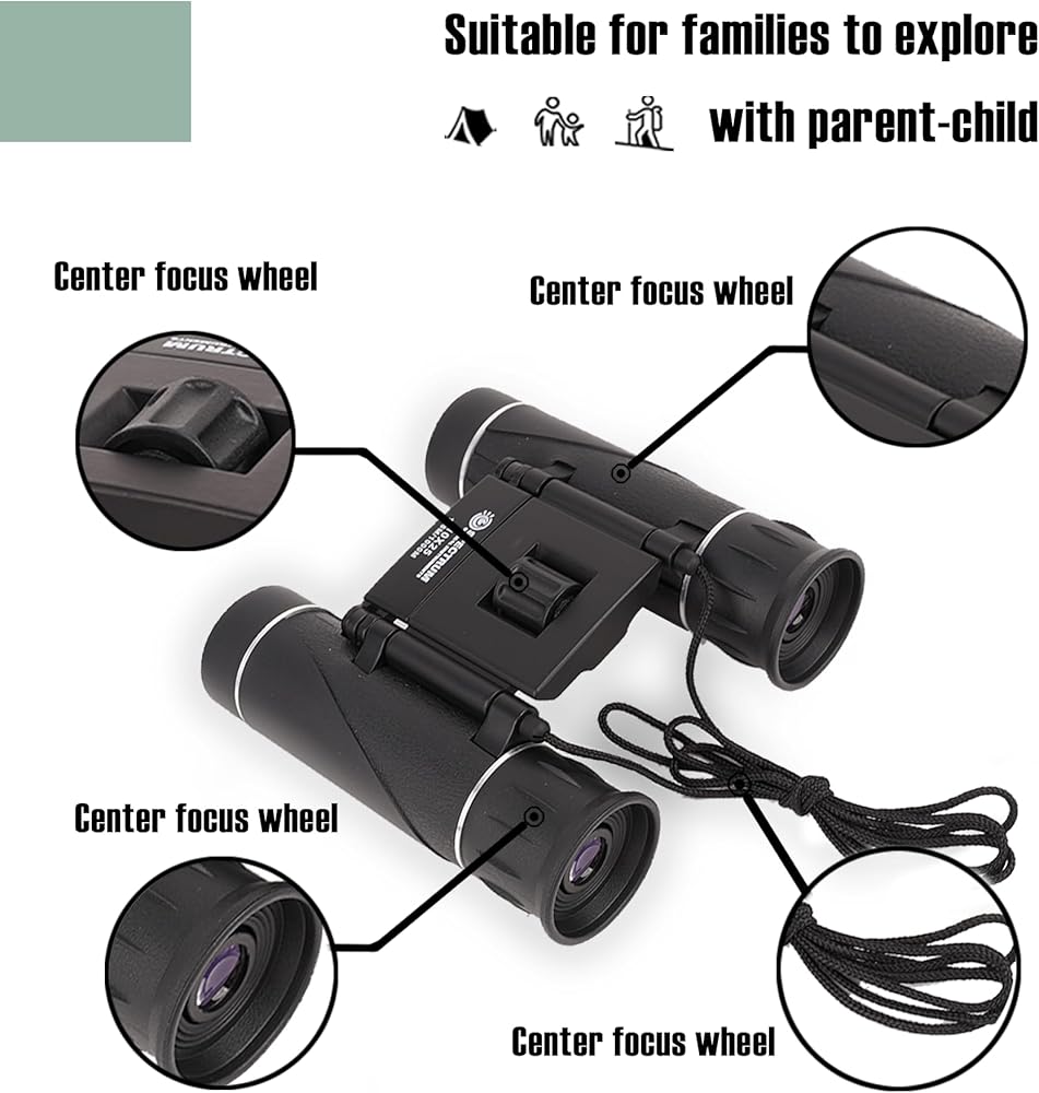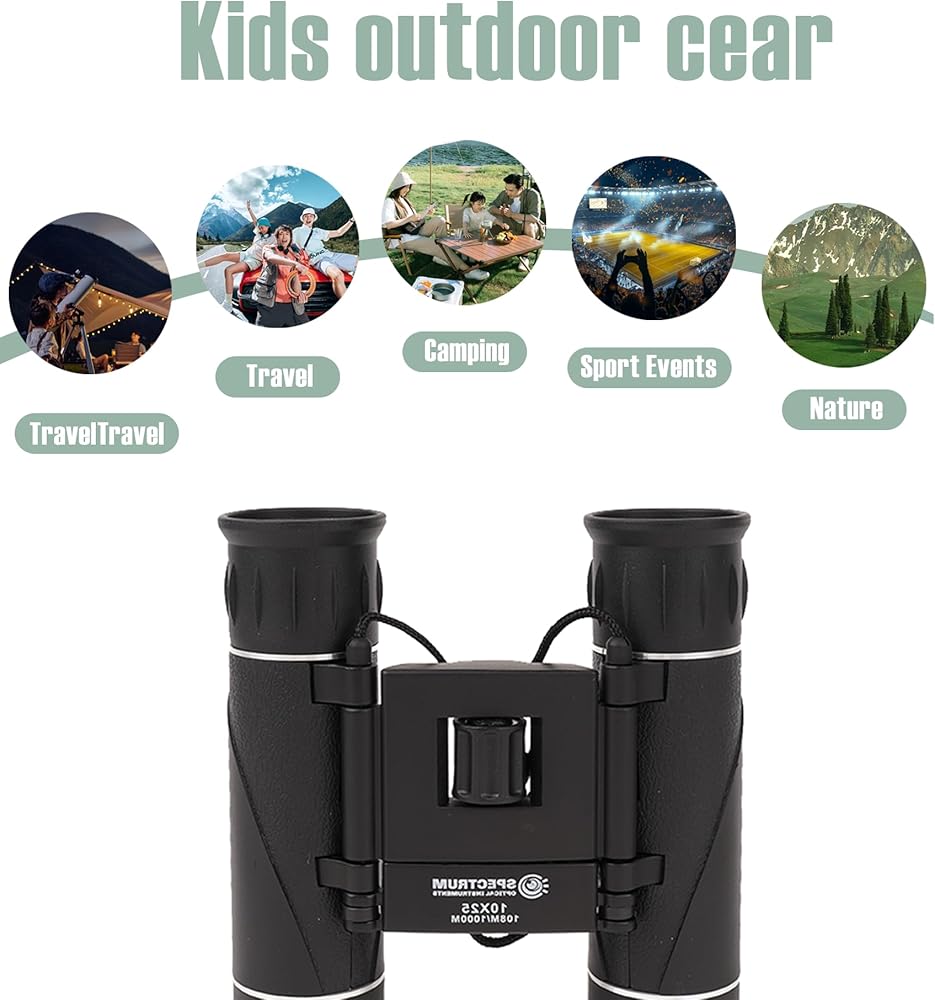 【Durable and Shockproof】This kids binoculars is protected by a layer of textured rubber which provides amazing grip and protection to the small binoculars for travel. The protected body allows this kid binoculars boy to withstand rugged use making this a perfect binocular for camping and camping toys for kids 3-5.
