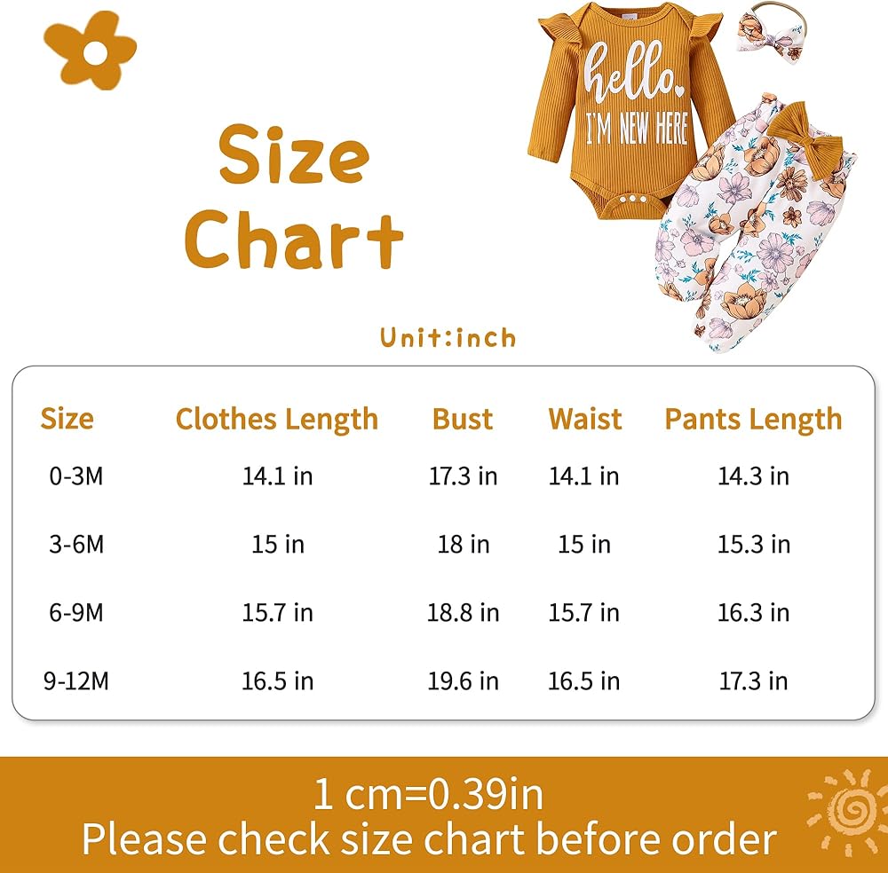 مقاس ملابس الفتيات حديثي الولادة: مجموعات الفتيات الصغيرات من Mikccer مناسبة لحديثي الولادة والرضع من 0 إلى 3 أشهر، ومن 3 إلى 6 أشهر، ومن 6 إلى 9 أشهر، ومن 9 إلى 12 شهرًا. ملابس الفتيات الصغيرات لدينا ذات مقاس مناسب، يرجى الرجوع إلى جدول المقاسات قبل الطلب لاختيار المقاس المناسب لطفلك